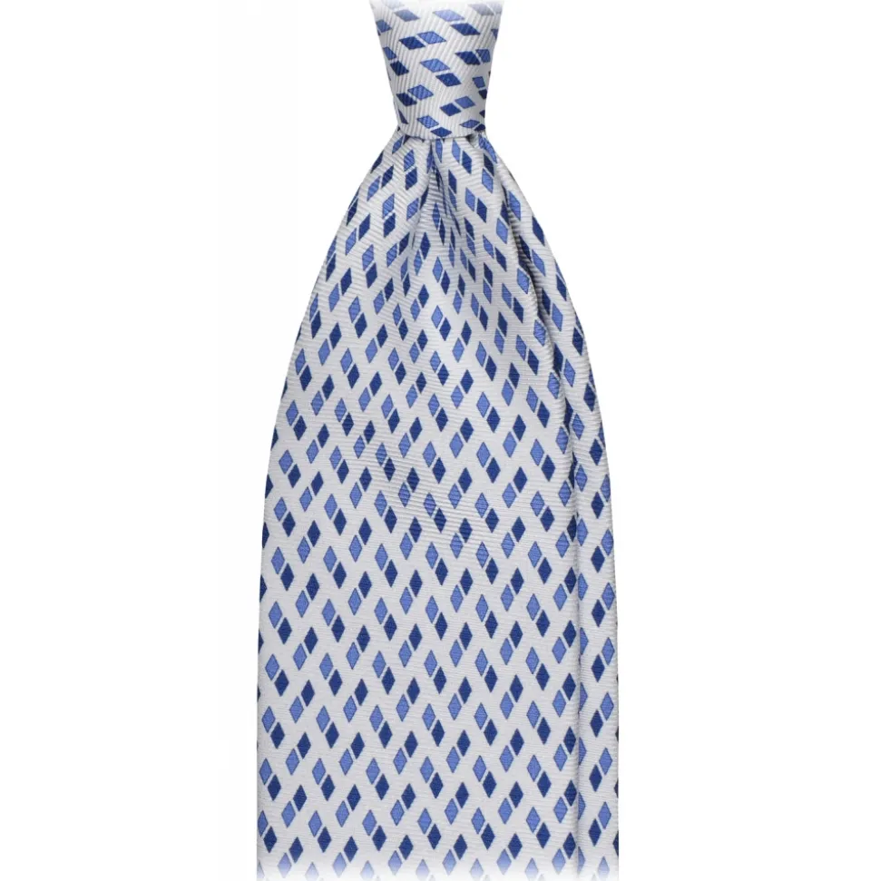 Viola Milano – Domino Pattern Selftipped Silk Tie – White – Handmade in Italy – Luxury Exclusive Collection
