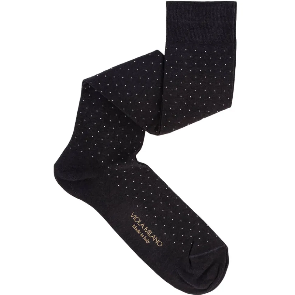 Viola Milano – Dot Over-The-Calf Cotton/Silk Socks – Grey Mix – Handmade in Italy – Luxury Exclusive Collection