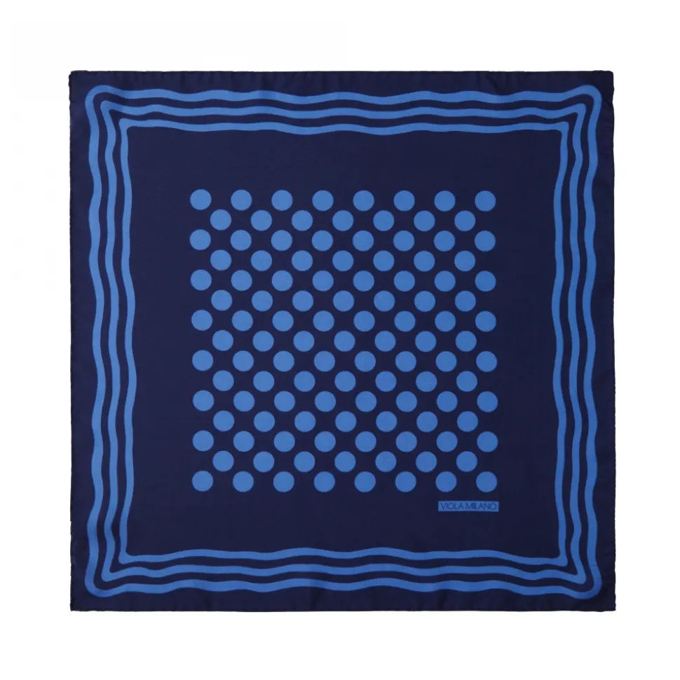 Viola Milano – Dot Wave Silk Pocket Square – Navy and Sea – Handmade in Italy – Luxury Exclusive Collection