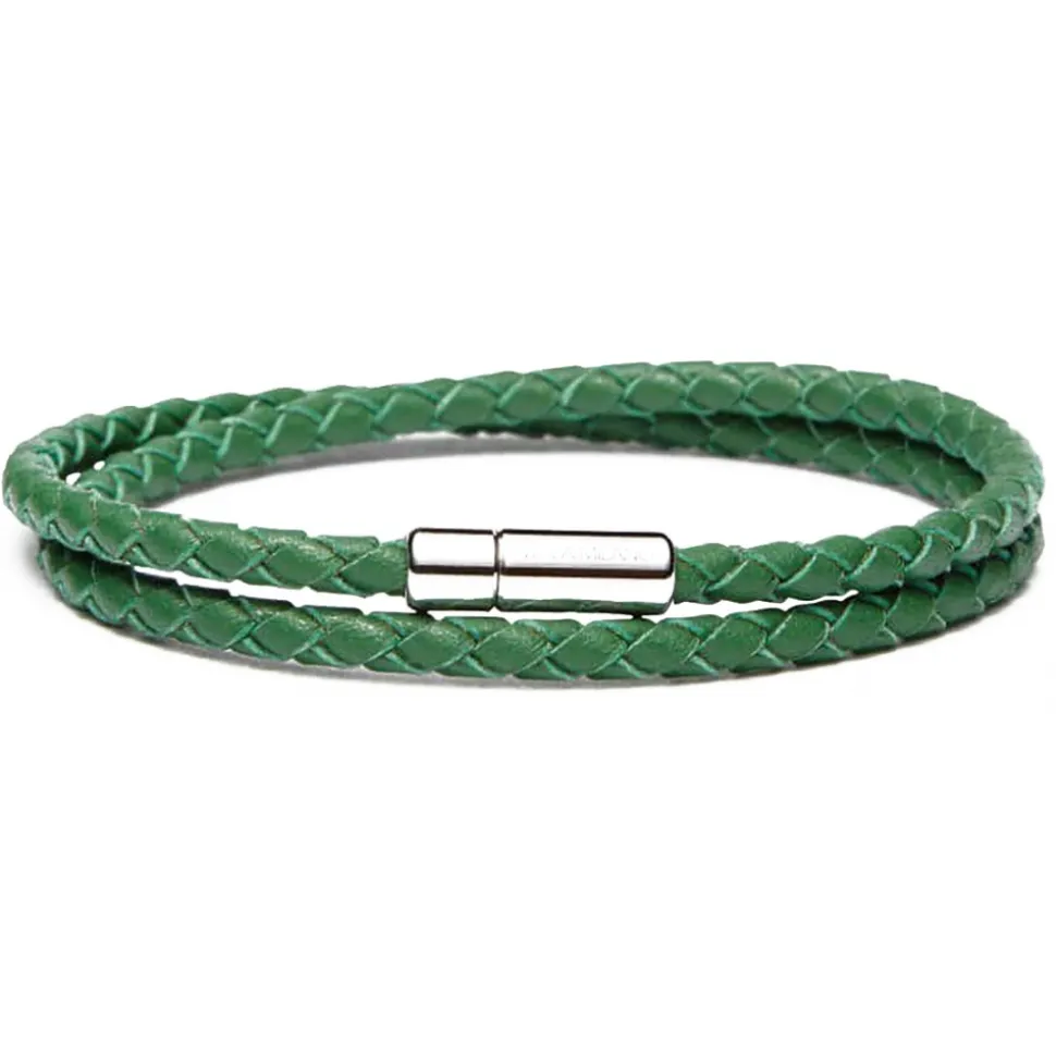 Viola Milano – Double Braided Italian Leather Bracelet – Green – Handmade in Italy – Luxury Exclusive Collection