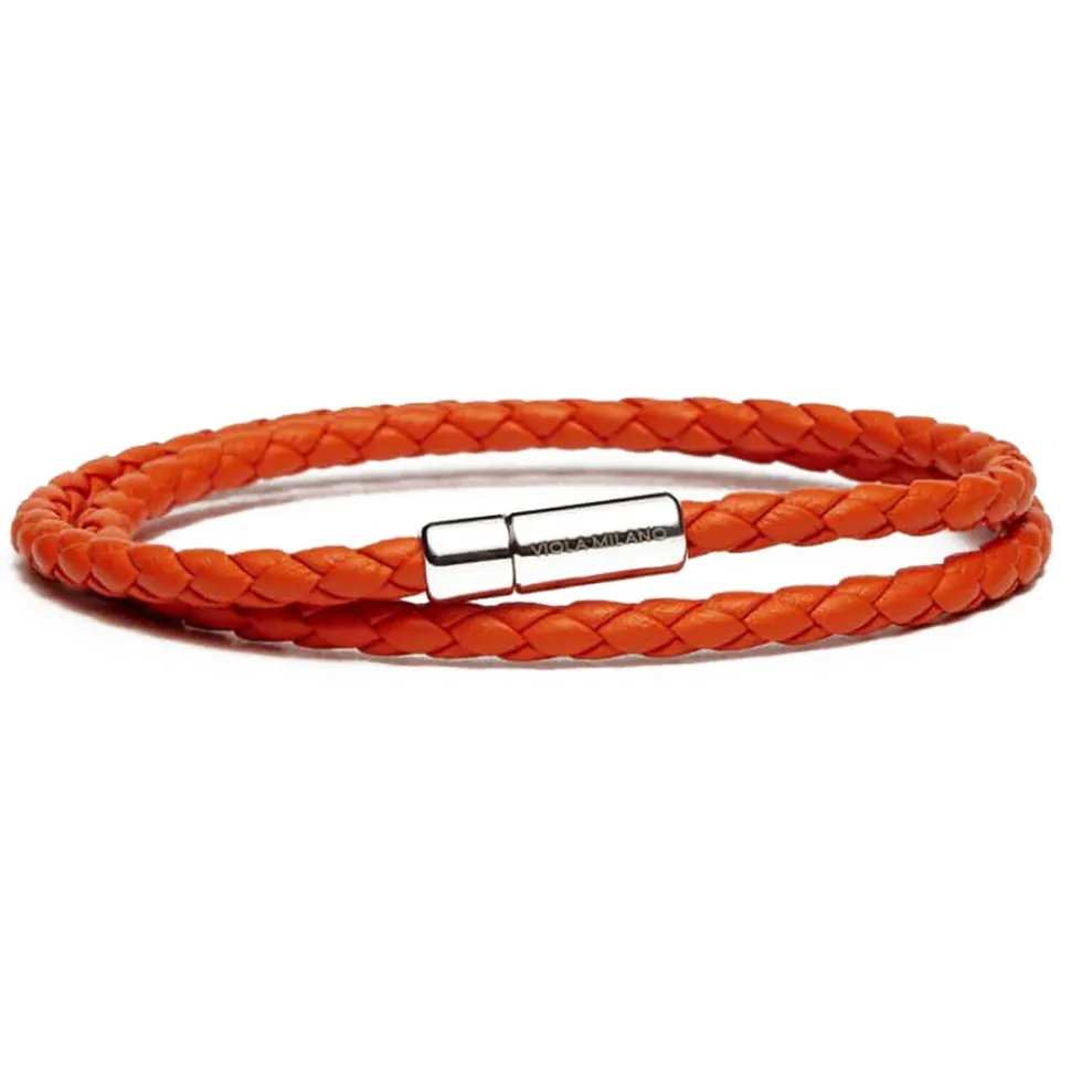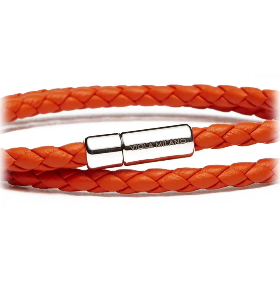 Viola Milano – Double Braided Italian Leather Bracelet – Orange – Handmade in Italy – Luxury Exclusive Collection