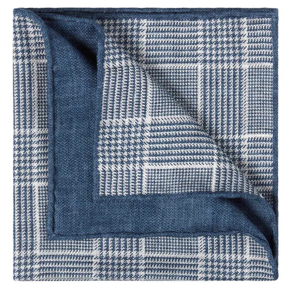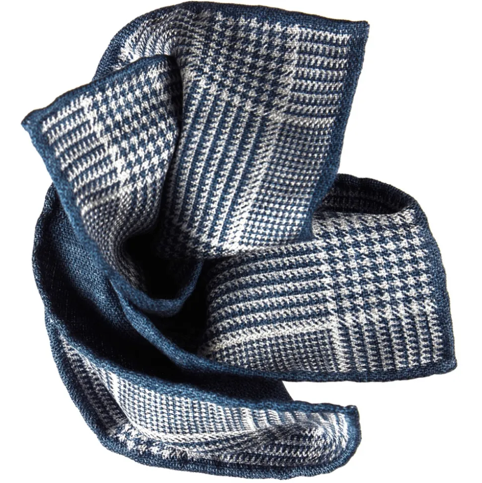Viola Milano – Double Face Printed Herringbone 100% Cashmere Pocket Square – Denim Mix – Handmade in Italy – Luxury Exclusive Collection