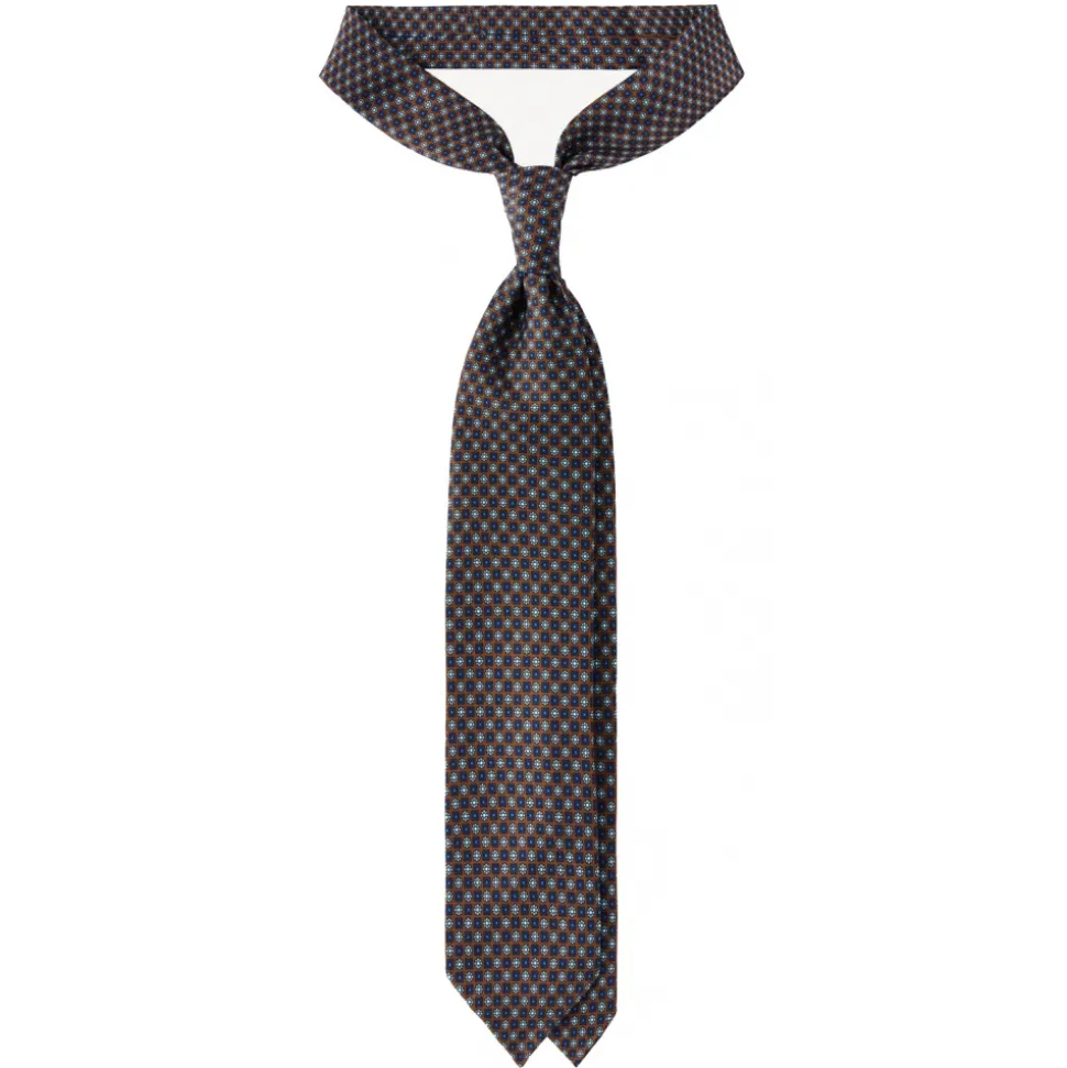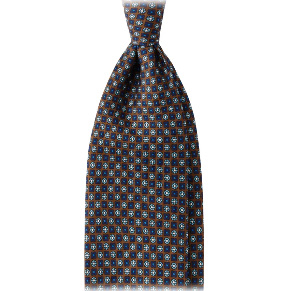 Viola Milano – Floral Pattern Selftipped Italian Silk Tie – Brown Mix – Handmade in Italy – Luxury Exclusive Collection