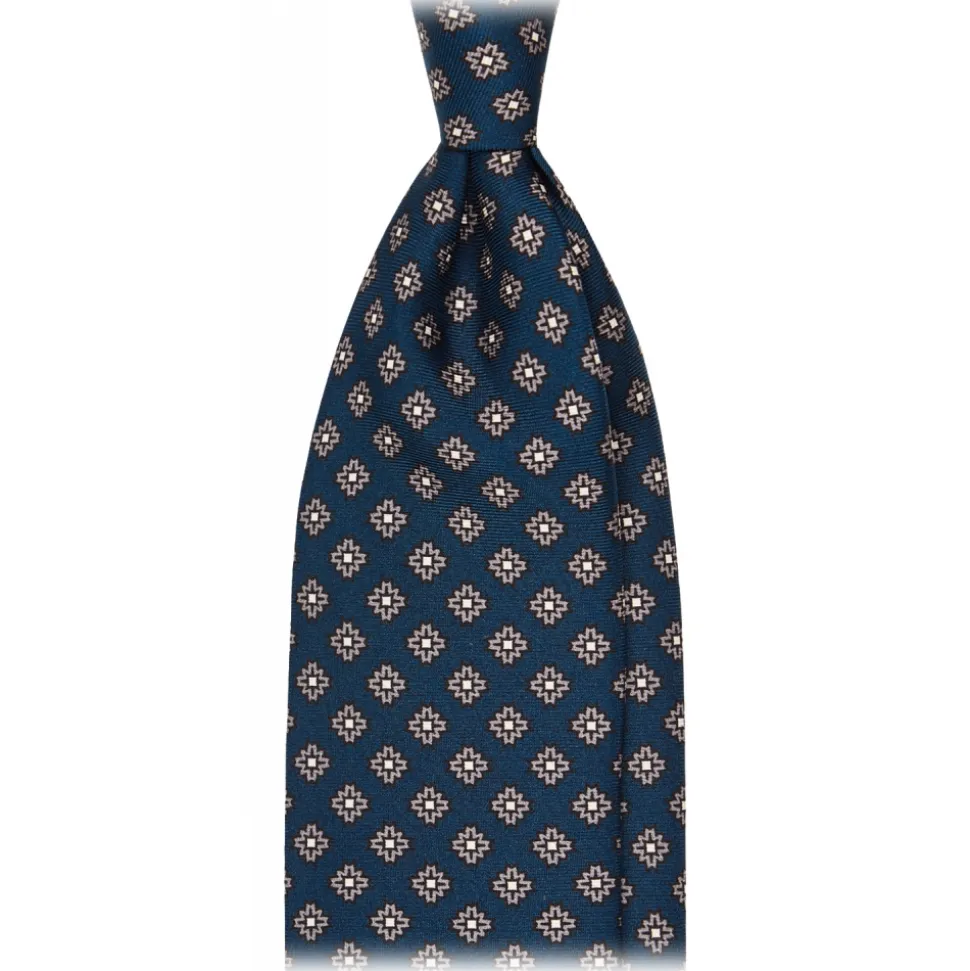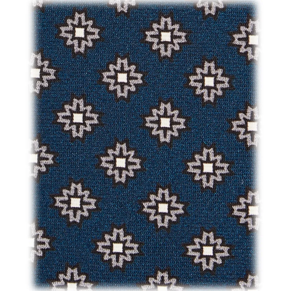 Viola Milano – Floral Pattern Selftipped Italian Silk Tie – Navy/Grey – Handmade in Italy – Luxury Exclusive Collection