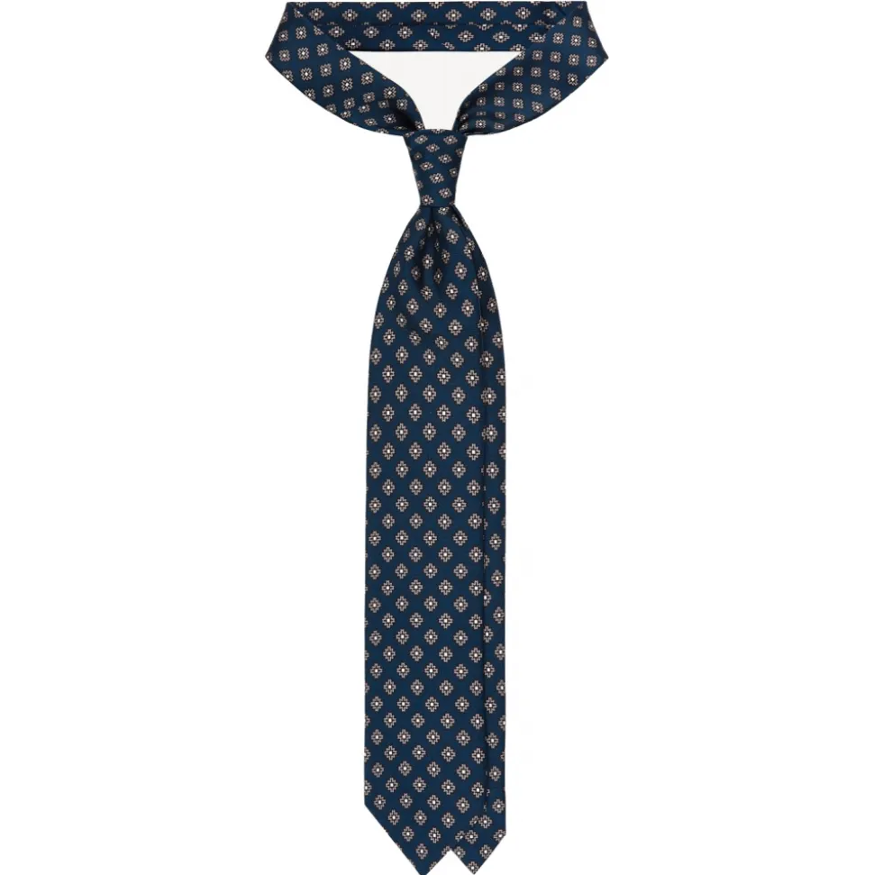 Handprinted 3-fold self tipped silk tie.