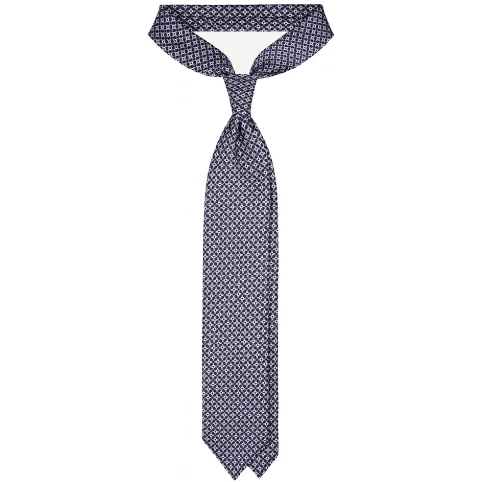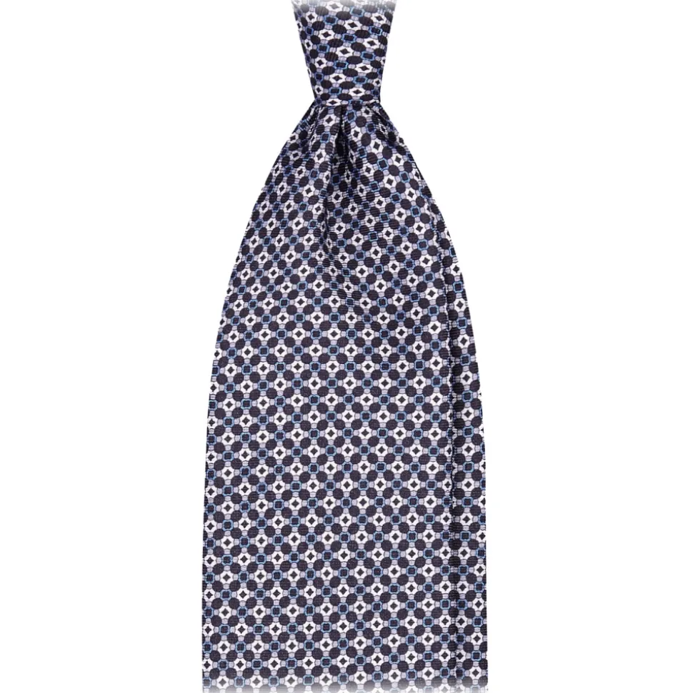 Viola Milano – Floral Pattern Selftipped Silk Tie – Blue Mix – Handmade in Italy – Luxury Exclusive Collection