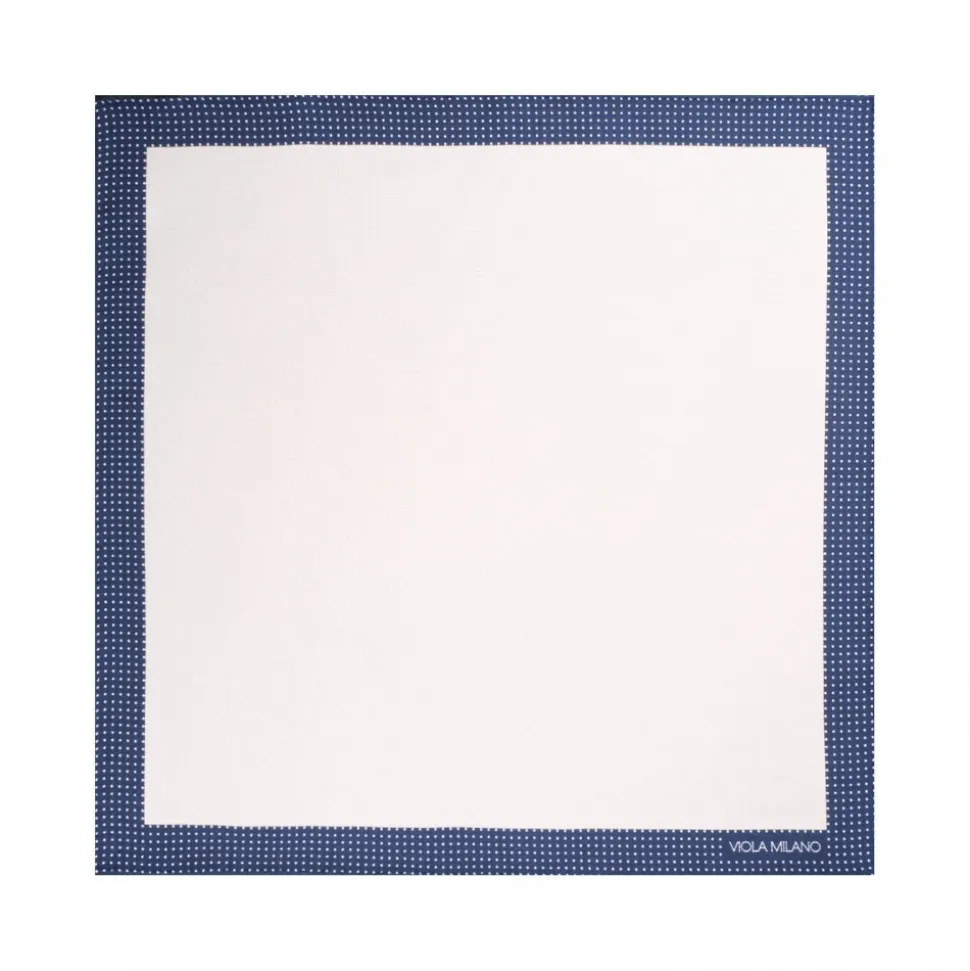 Viola Milano – Frame Polka Dot Silk Pocket Square – Navy and White – Handmade in Italy – Luxury Exclusive Collection