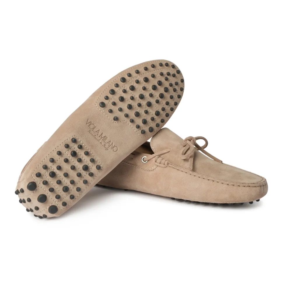 Viola Milano – Gommino Suede Loafer – Beige – Handmade in Italy – Luxury Exclusive Collection