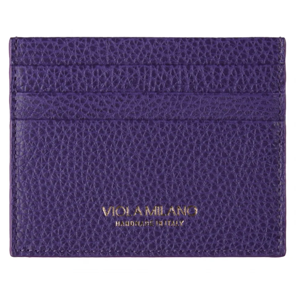 Viola Milano – Grain Leather Credit Card Holder – Purple – Handmade in Italy – Luxury Exclusive Collection