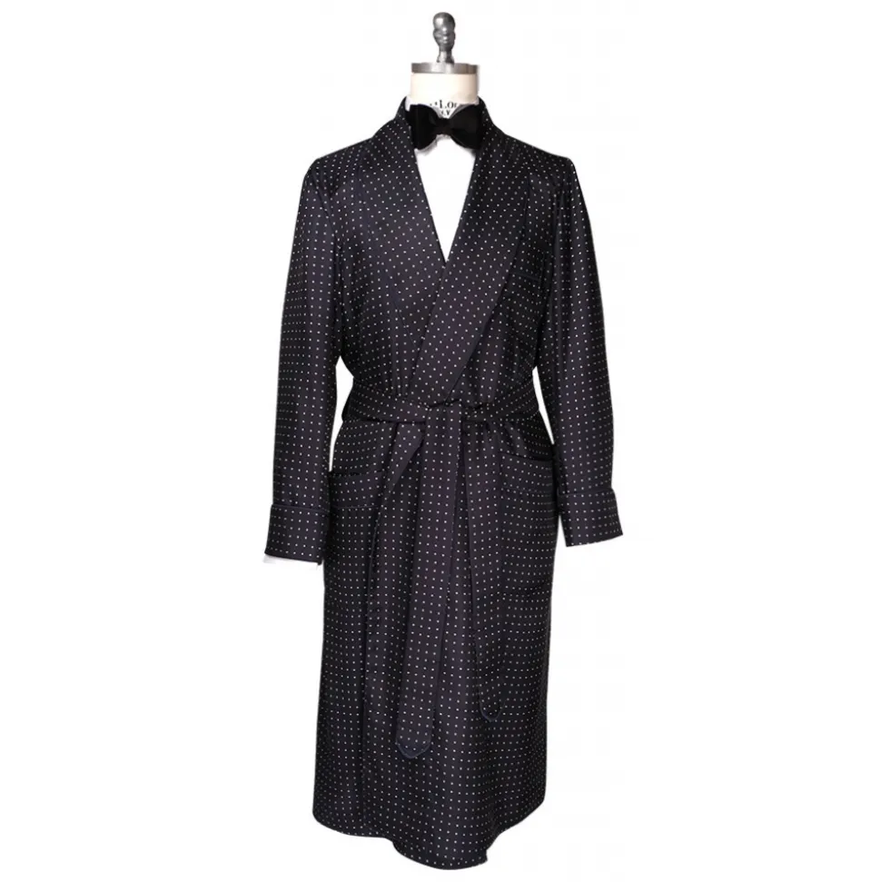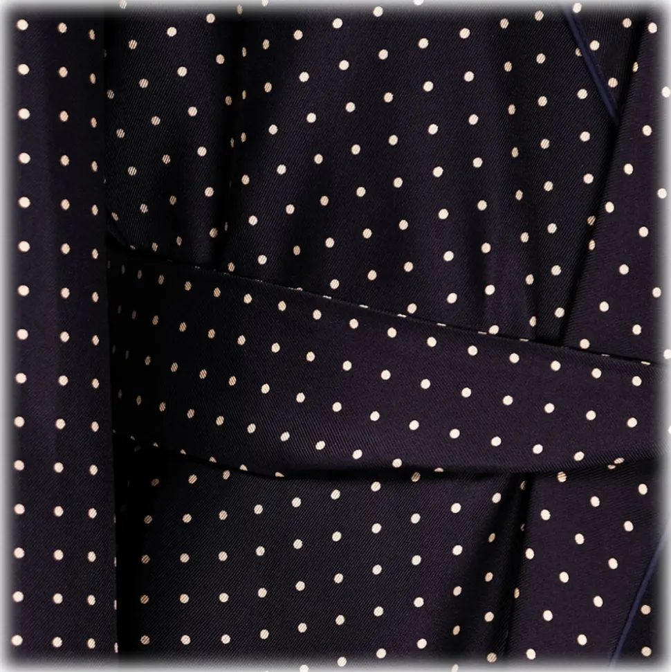 Viola Milano – Handprinted Silk Dressing Gown – Navy Spot – Handmade in Italy – Luxury Exclusive Collection