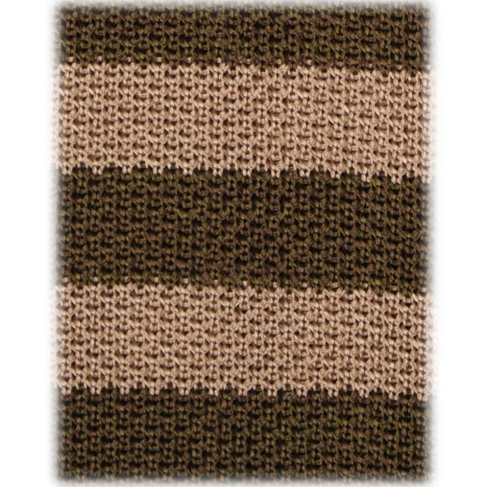 Viola Milano – Knitted Classic Stripe Silk Tie – Olive/Sand – Handmade in Italy – Luxury Exclusive Collection