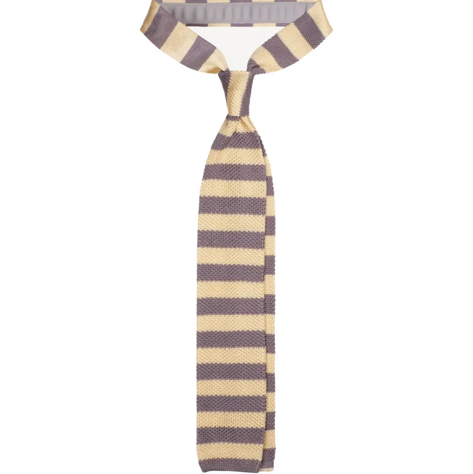 Viola Milano – Knitted Classic Stripe Silk Tie – Sun/Grey – Handmade in Italy – Luxury Exclusive Collection