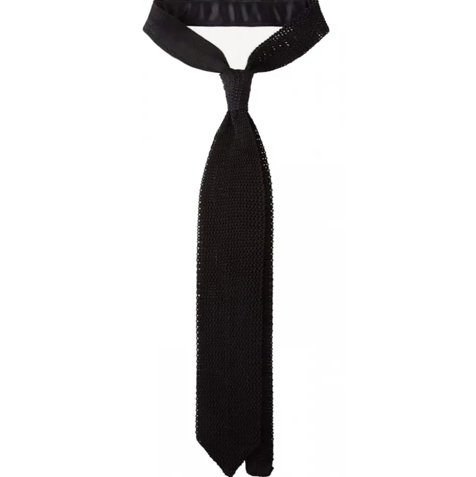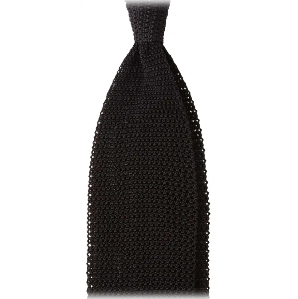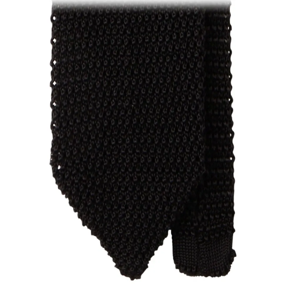 Viola Milano – Knitted Solid V-End Silk Tie – Black – Handmade in Italy – Luxury Exclusive Collection