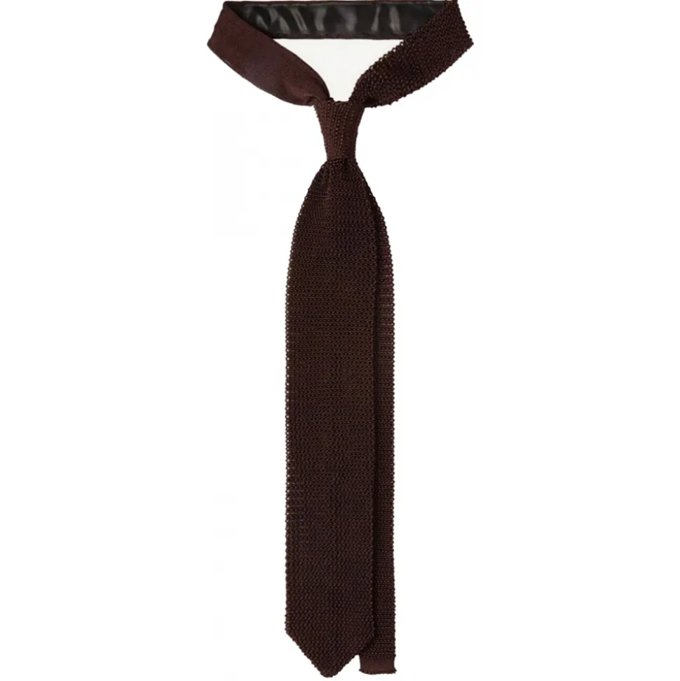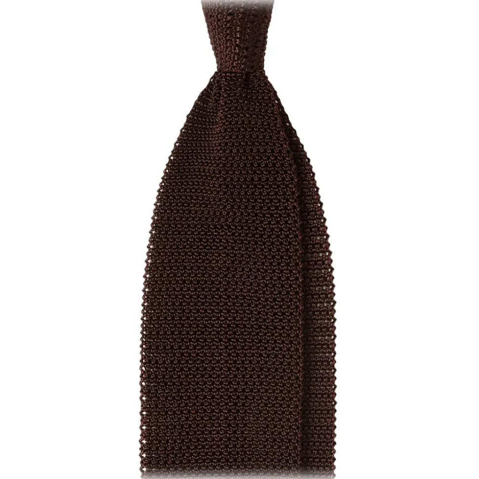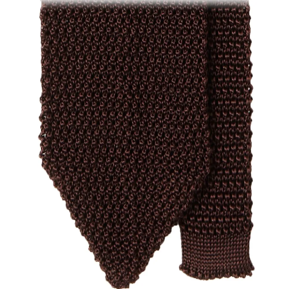 Viola Milano – Knitted Solid V-End Silk Tie – Brown – Handmade in Italy – Luxury Exclusive Collection