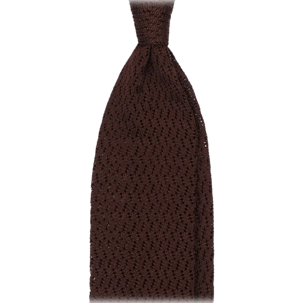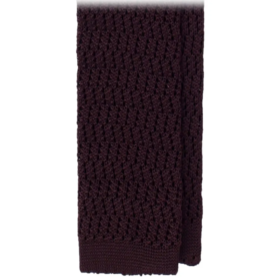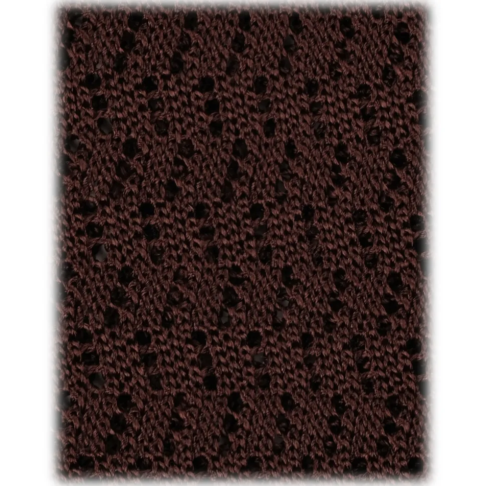 Viola Milano – Knitted Zig Zag Pattern Silk Tie – Brown – Handmade in Italy – Luxury Exclusive Collection