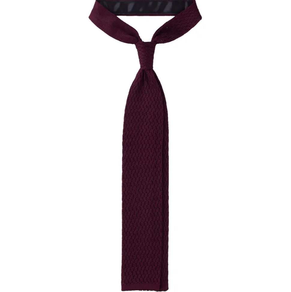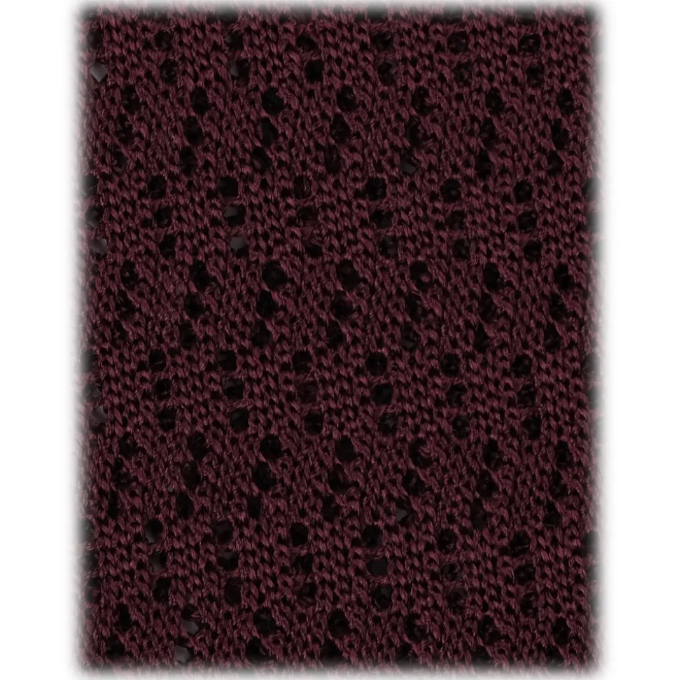 Viola Milano – Knitted Zig Zag Pattern Silk Tie – Burgundy – Handmade in Italy – Luxury Exclusive Collection