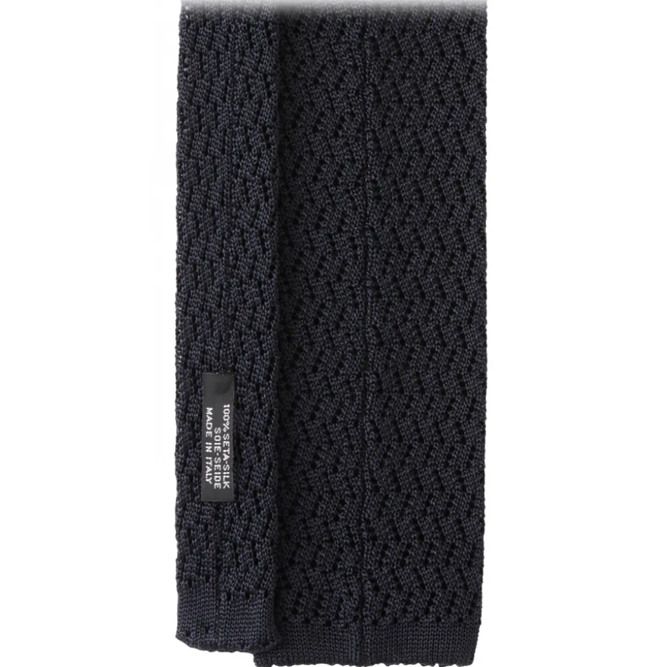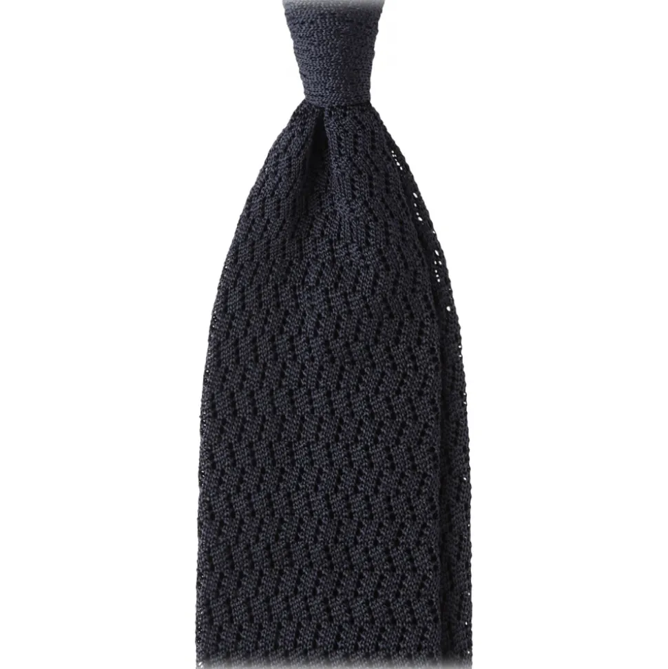 Viola Milano – Knitted Zig Zag Pattern Silk Tie – Charcoal Grey – Handmade in Italy – Luxury Exclusive Collection