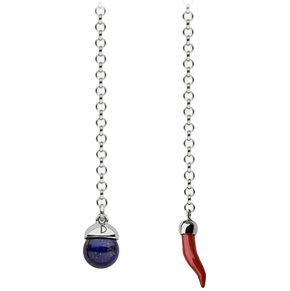 Viola Milano – Lapel Chain Sterling Silver – Lapislazzuli Ball with Red Coral Horn – Handmade in Italy – Luxury Exclusive Collection