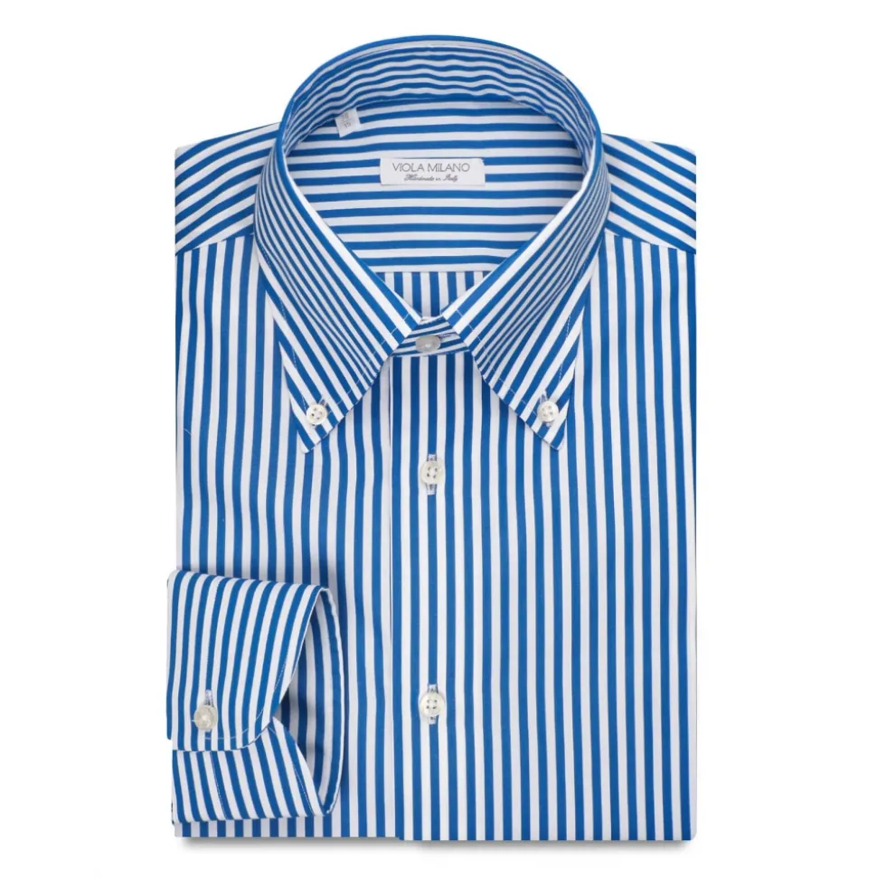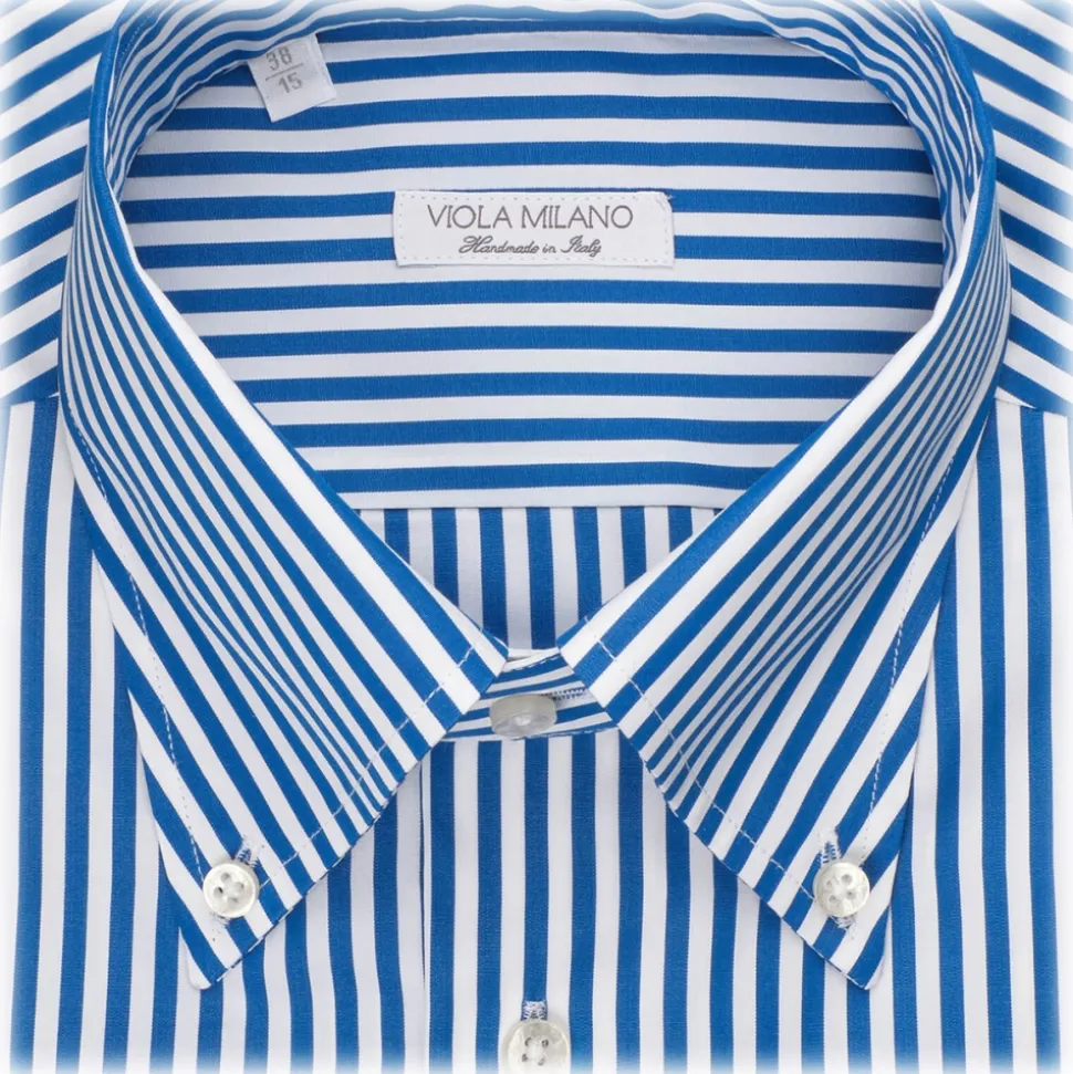 Viola Milano – Long Sleeve Shirt – Blue Stripe – Handmade in Italy – Luxury Exclusive Collection