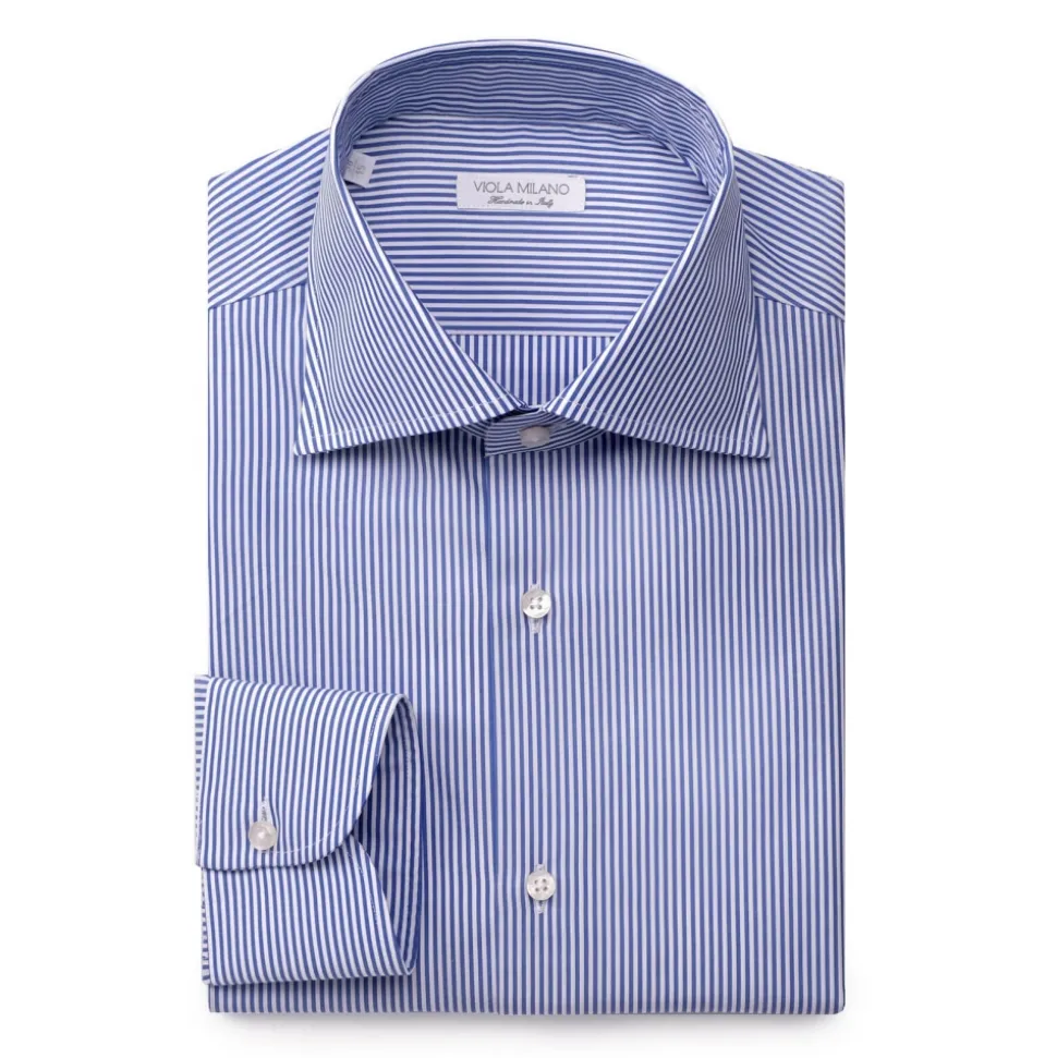 Viola Milano – Long Sleeve Shirt – Light Blue Stripe – Handmade in Italy – Luxury Exclusive Collection