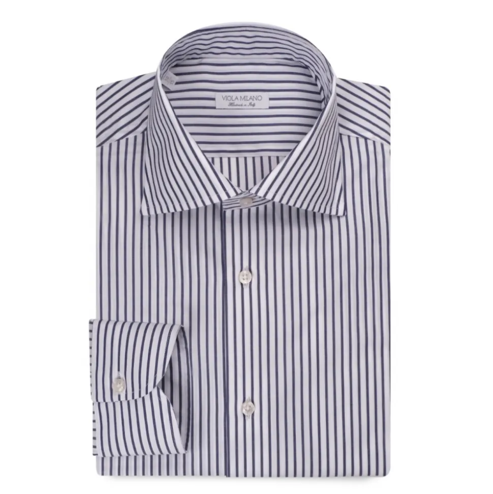 Viola Milano – Long Sleeve Shirt – Midnight and White – Handmade in Italy – Luxury Exclusive Collection