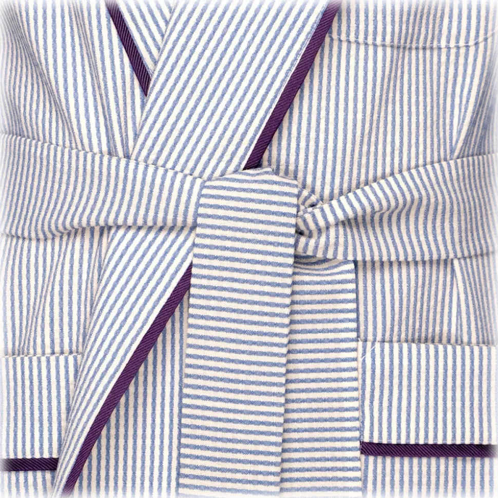 Viola Milano – Loro Piana Seersucker Dressing Gown – Sea and White – Handmade in Italy – Luxury Exclusive Collection