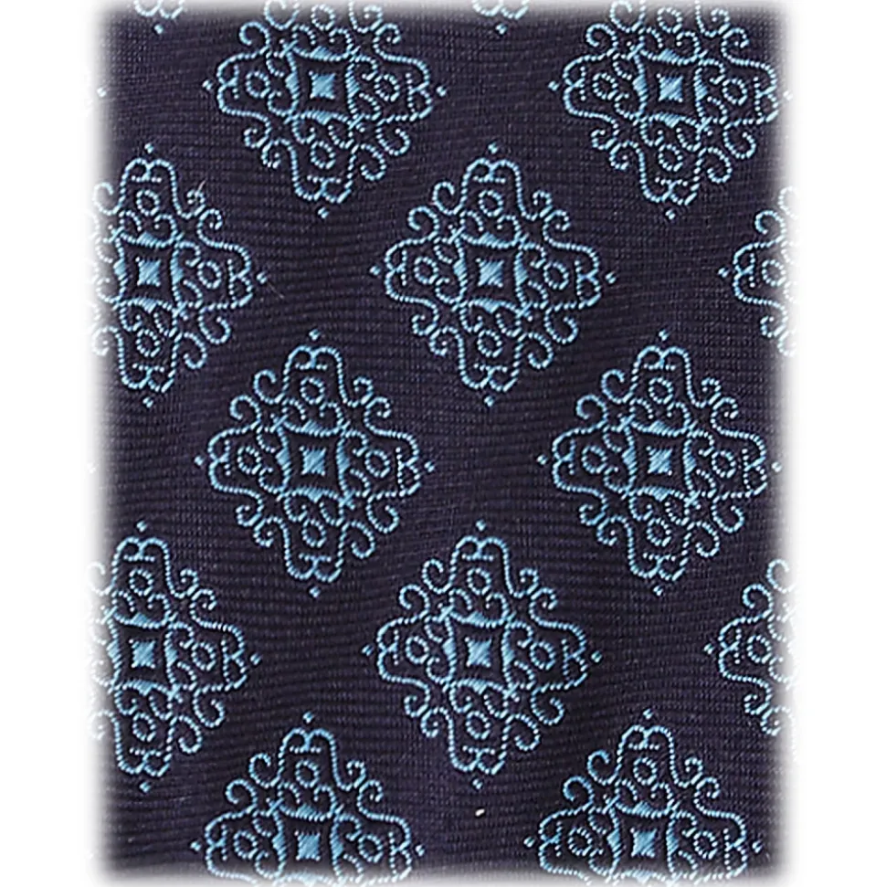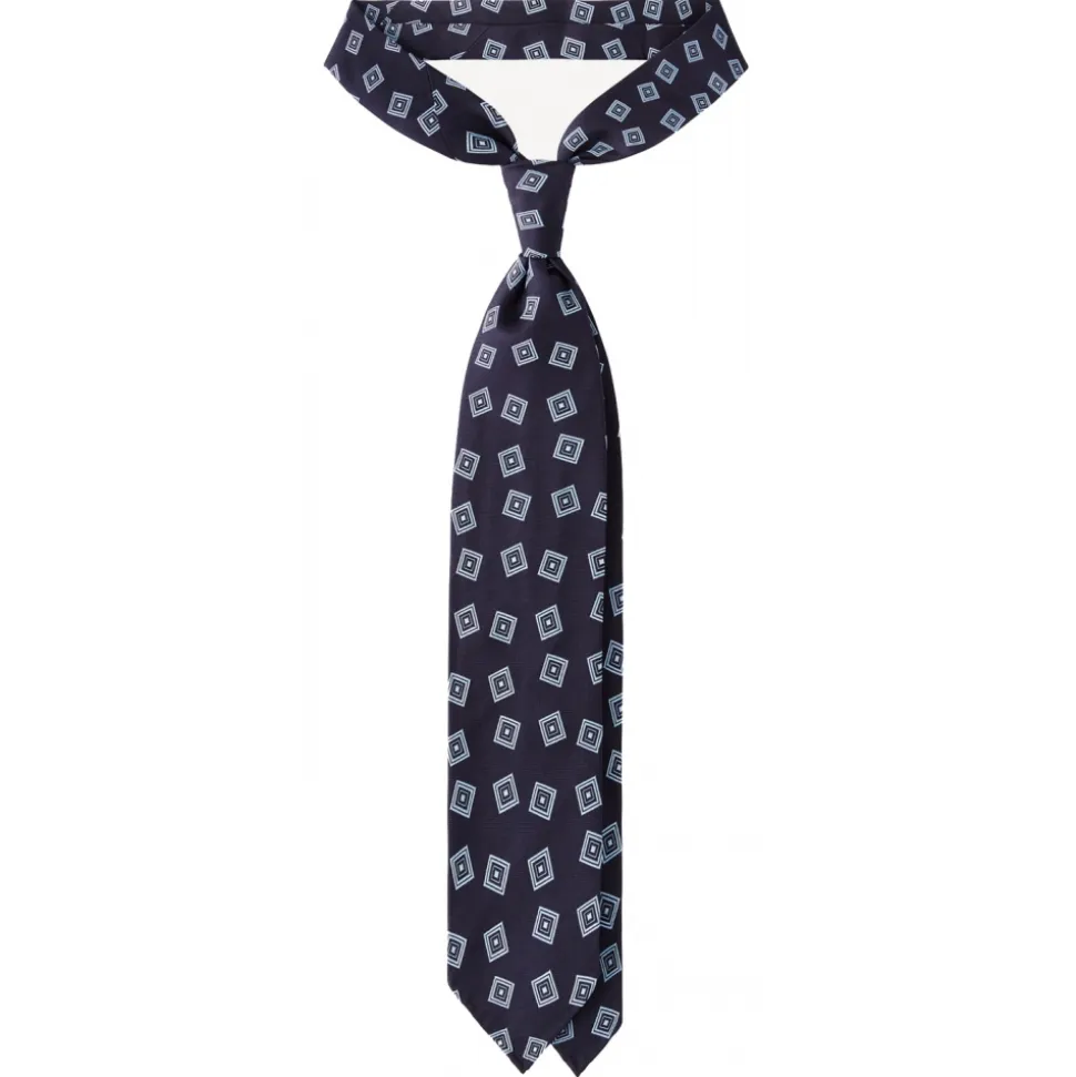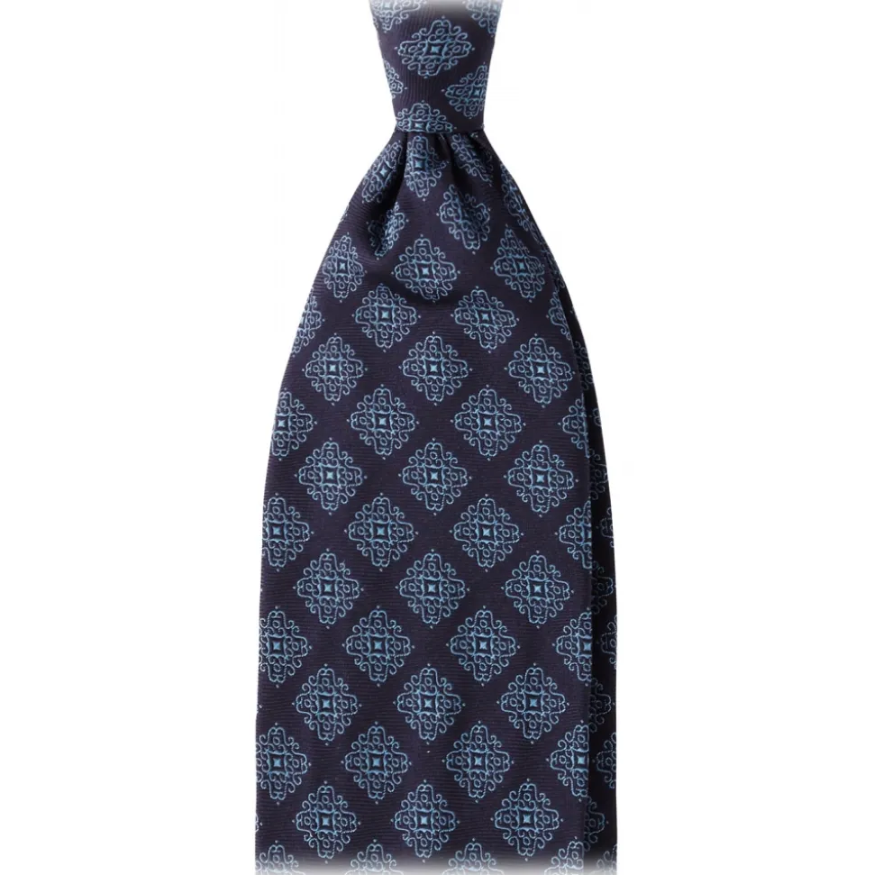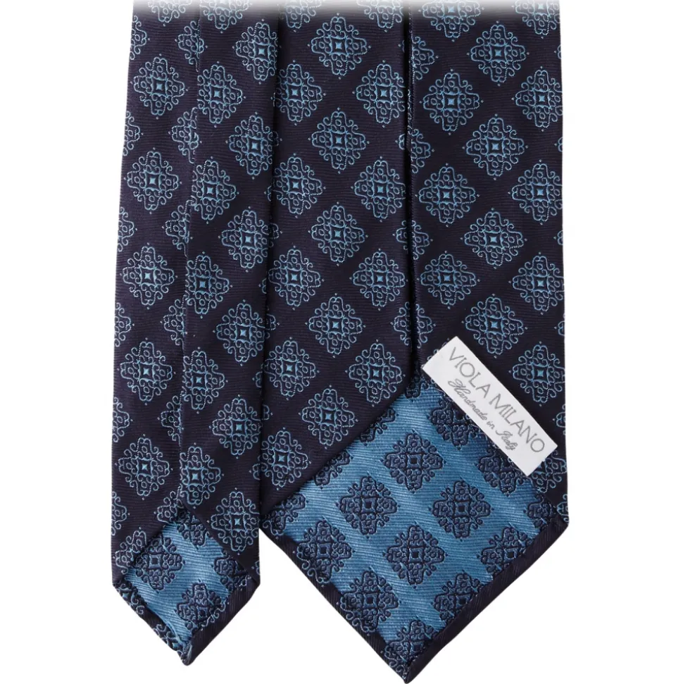 Viola Milano – Medallion Archive Vintage Handrolled Woven Silk Tie – Navy/Sea – Handmade in Italy – Luxury Exclusive Collection