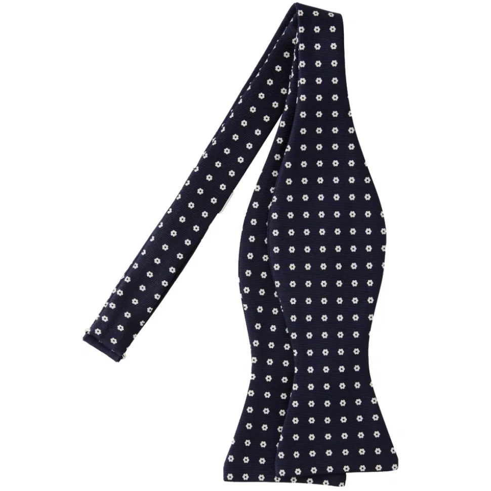 Viola Milano – Micro Floral Silk Bow Tie – Navy – Handmade in Italy – Luxury Exclusive Collection