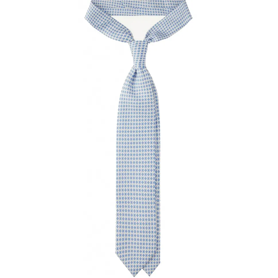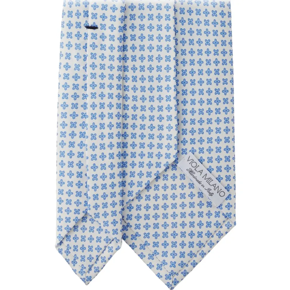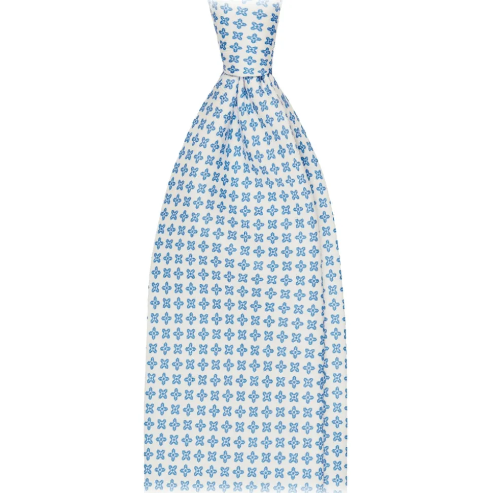 Viola Milano – Micro Flower Selftipped Silk Tie – White/Light Blue – Handmade in Italy – Luxury Exclusive Collection