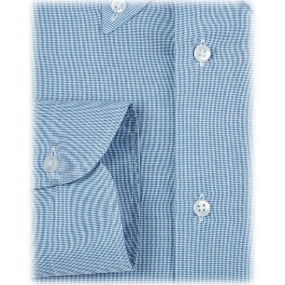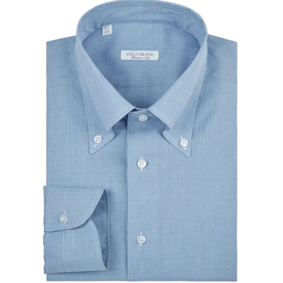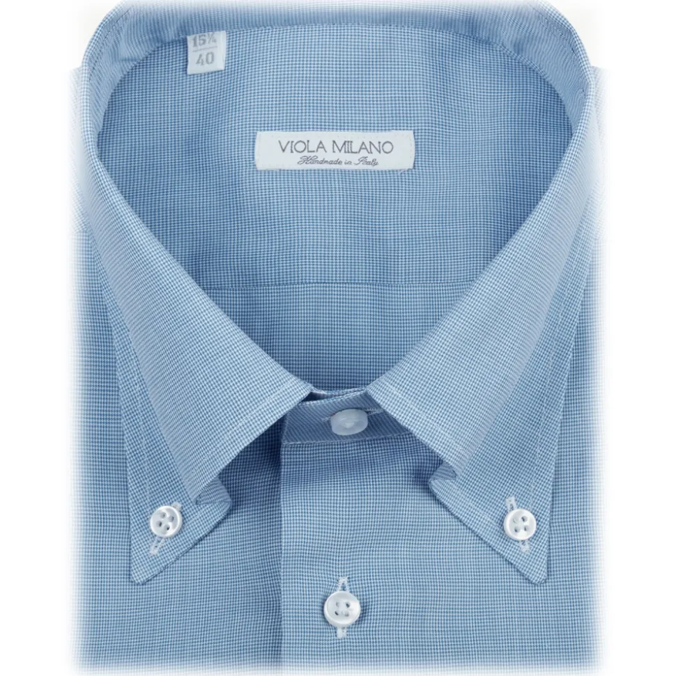 Viola Milano – Micro Pattern Carlo Riva Voila Tela Button-Down Shirt – Light Blue – Handmade in Italy – Luxury Exclusive Collection