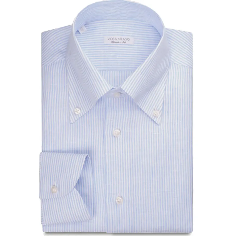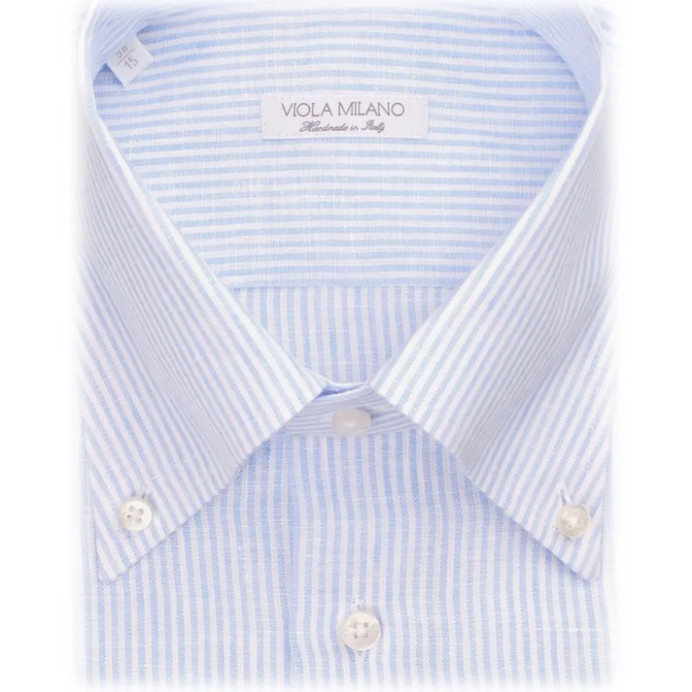 Viola Milano – Micro Stripe Carlo Riva 100% Linen Button-Down Shirt – Turqouise Sea – Handmade in Italy – Luxury Exclusive Collection