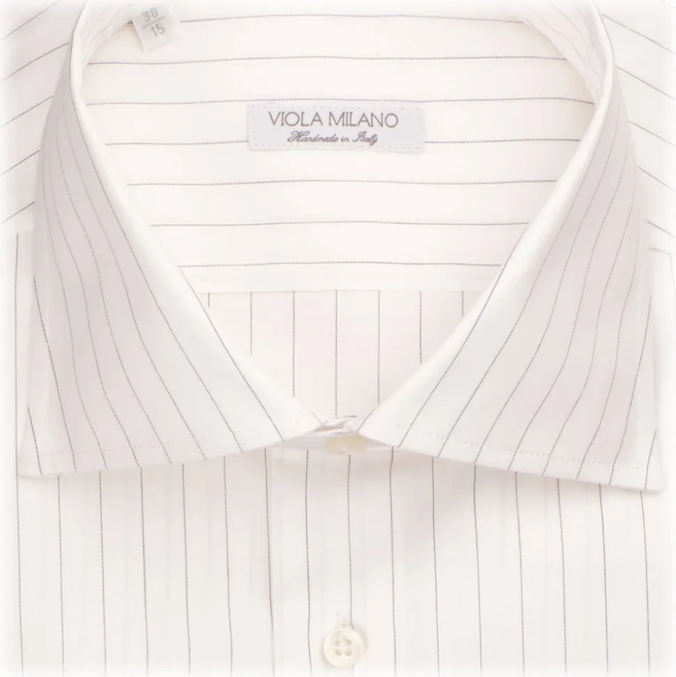 Viola Milano – Milanese Stripe Shirt – Navy and White – Handmade in Italy – Luxury Exclusive Collection