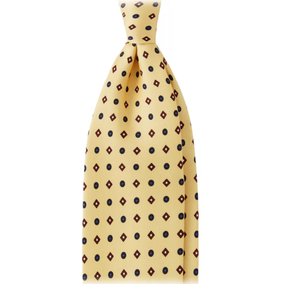 Viola Milano – Mix Floral Selftipped Italian Silk Tie – Yellow LL – Handmade in Italy – Luxury Exclusive Collection