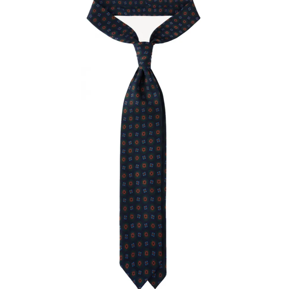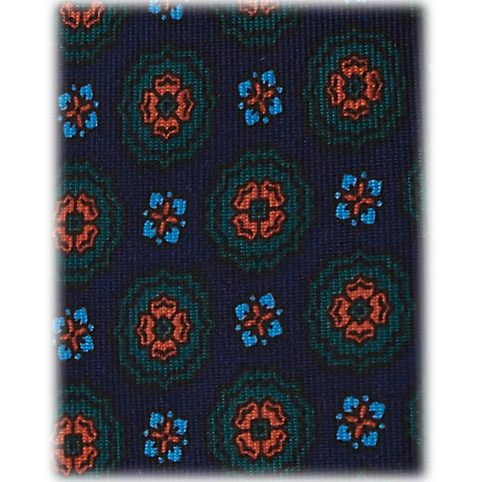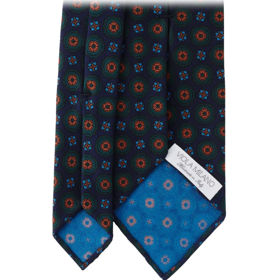 Viola Milano – Mix Flower Handprinted Ancient Madder Silk Tie – Navy – Handmade in Italy – Luxury Exclusive Collection