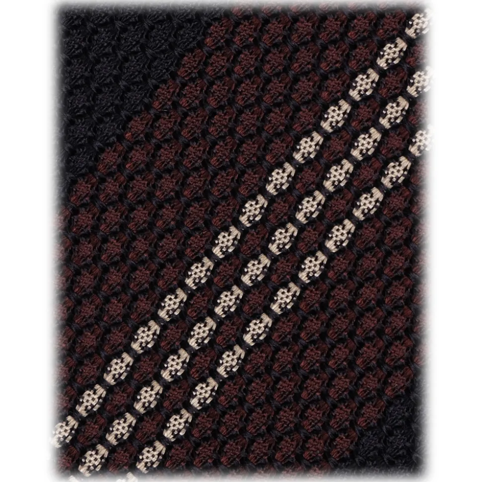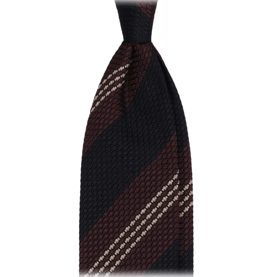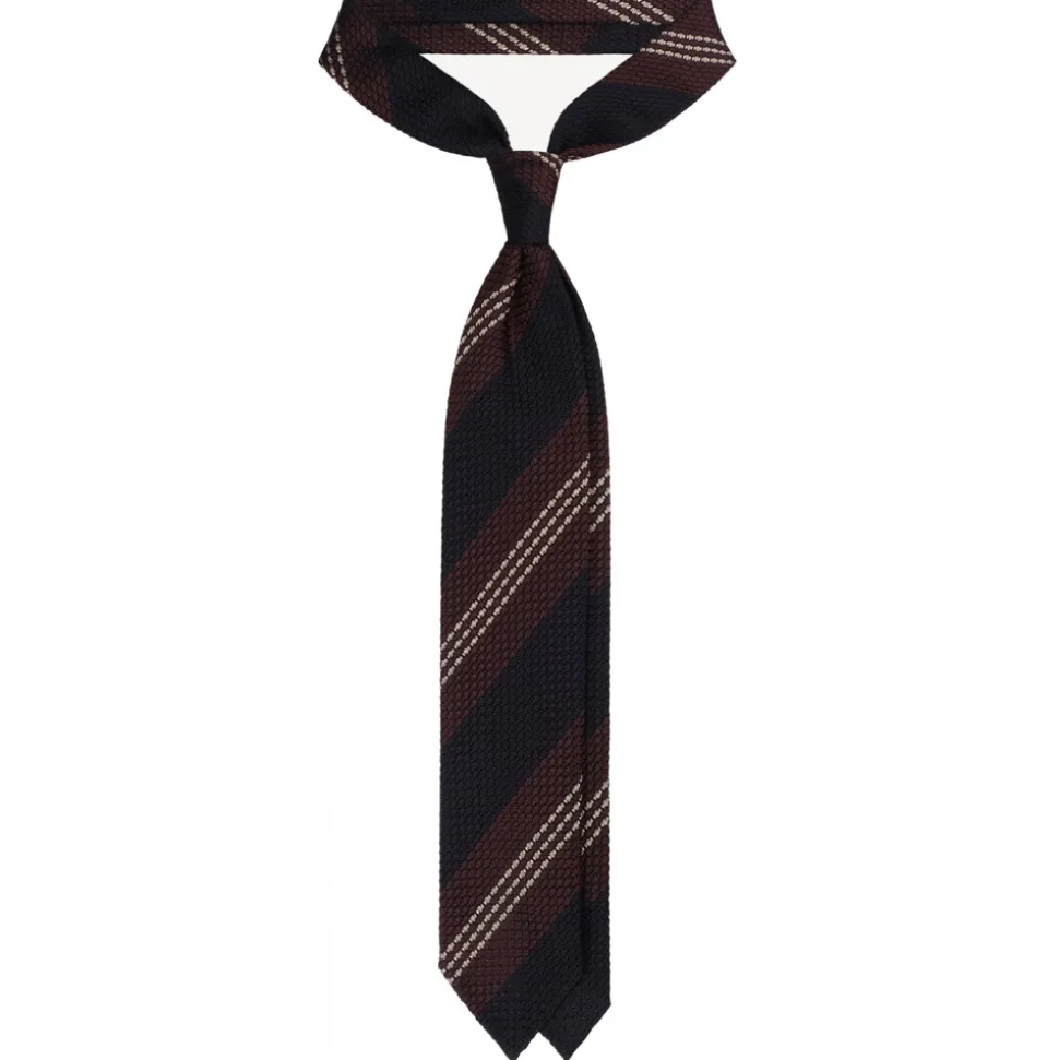 Viola Milano – Mix Stripe 3-Fold Grenadine Tie – Navy/Brown Mix – Handmade in Italy – Luxury Exclusive Collection
