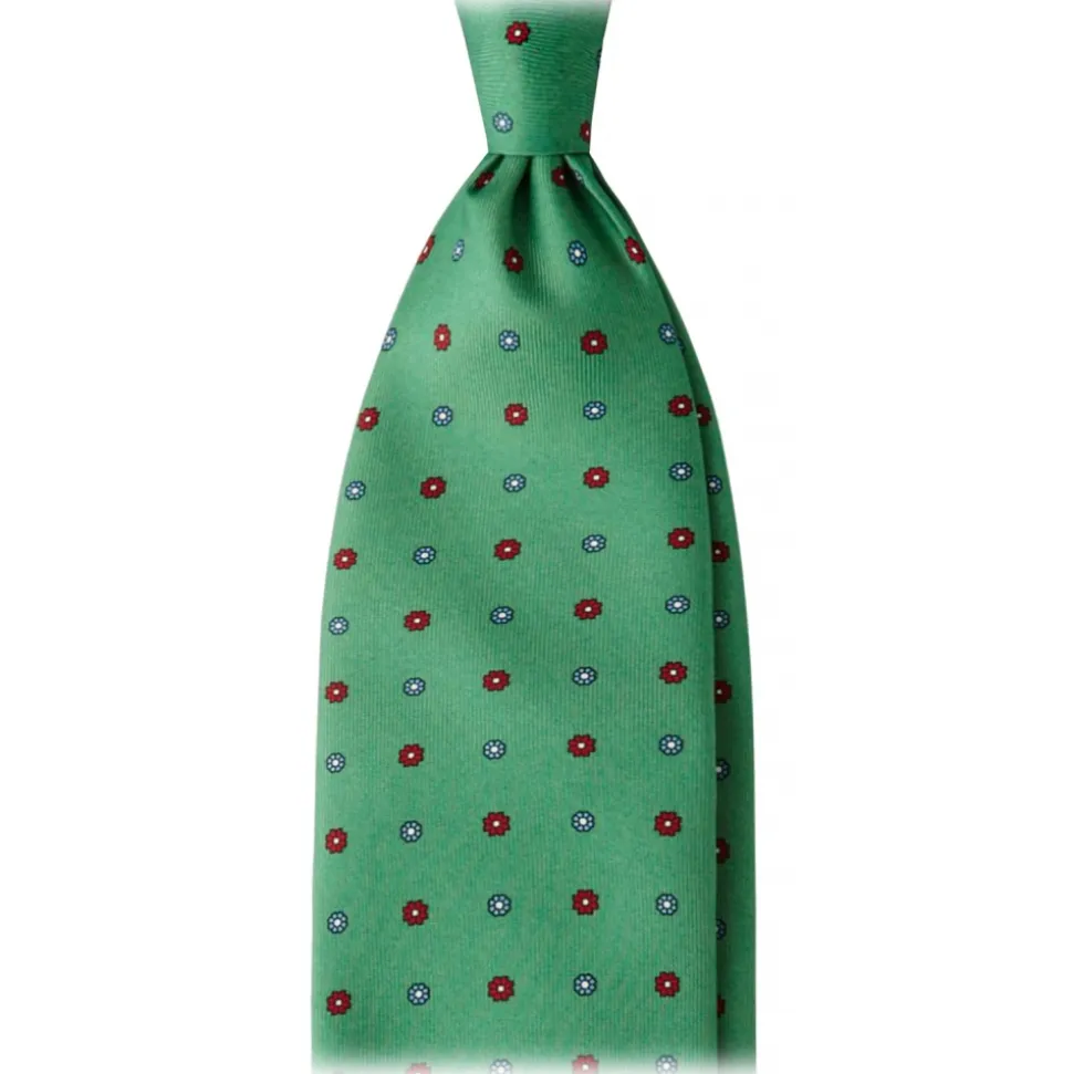 Viola Milano – Mixed Floral 3-Fold Selftipped Silk Tie – Apple – Handmade in Italy – Luxury Exclusive Collection