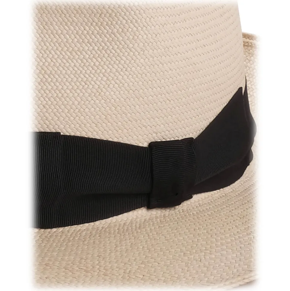 Viola Milano – Natural Panama Hat Italia with Contrasting Gross Grain – Black/White – Handmade in Italy – Luxury Exclusive Collection
