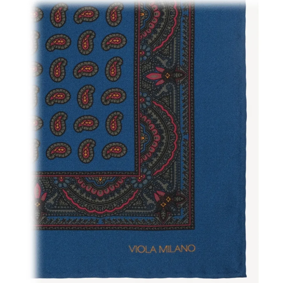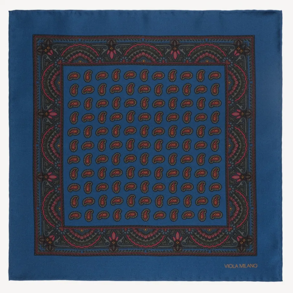 Viola Milano – Paisley Archive Printed Silk Pocket Square – Blue – Handmade in Italy – Luxury Exclusive Collection