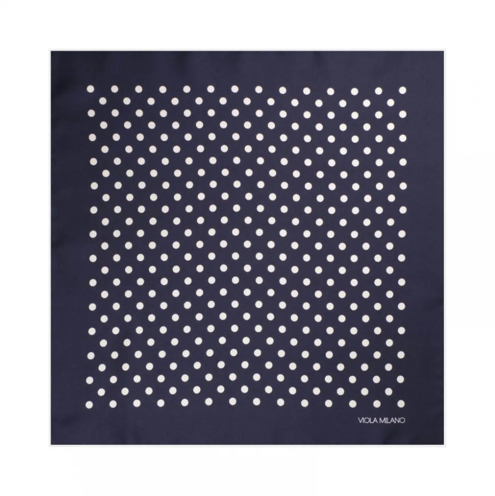 Viola Milano – Polka Dot Silk Pocket Square – Navy and White – Handmade in Italy – Luxury Exclusive Collection