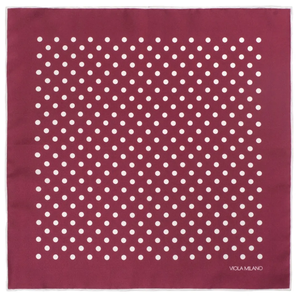 Viola Milano – Polka Dot Silk Pocket Square – Wine/White – Handmade in Italy – Luxury Exclusive Collection