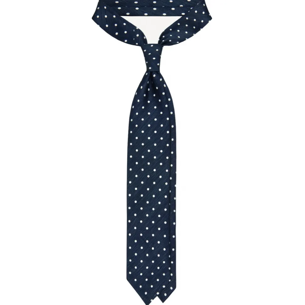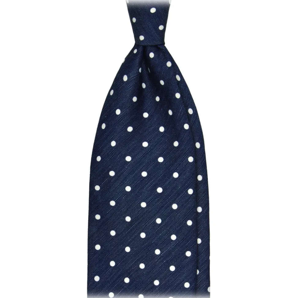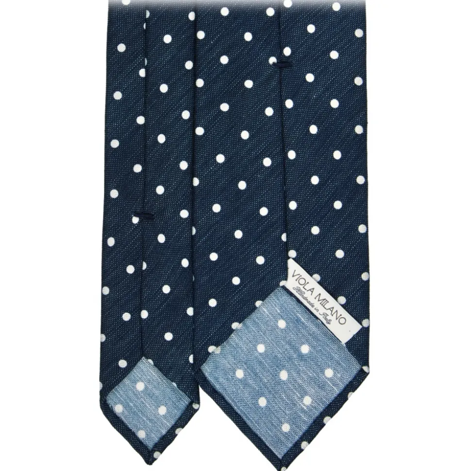 Viola Milano – Polka Dot Untipped Linen Tie – Navy/White – Handmade in Italy – Luxury Exclusive Collection