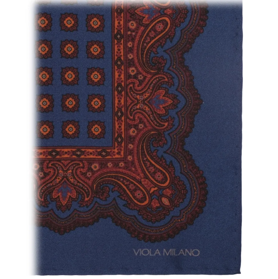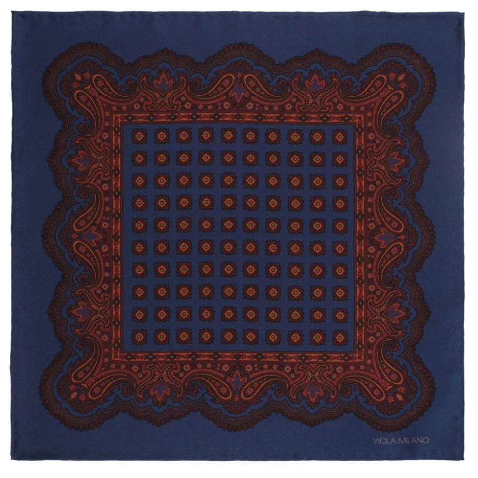 Viola Milano – Rosette Archive Printed Silk Pocket Square – Navy – Handmade in Italy – Luxury Exclusive Collection