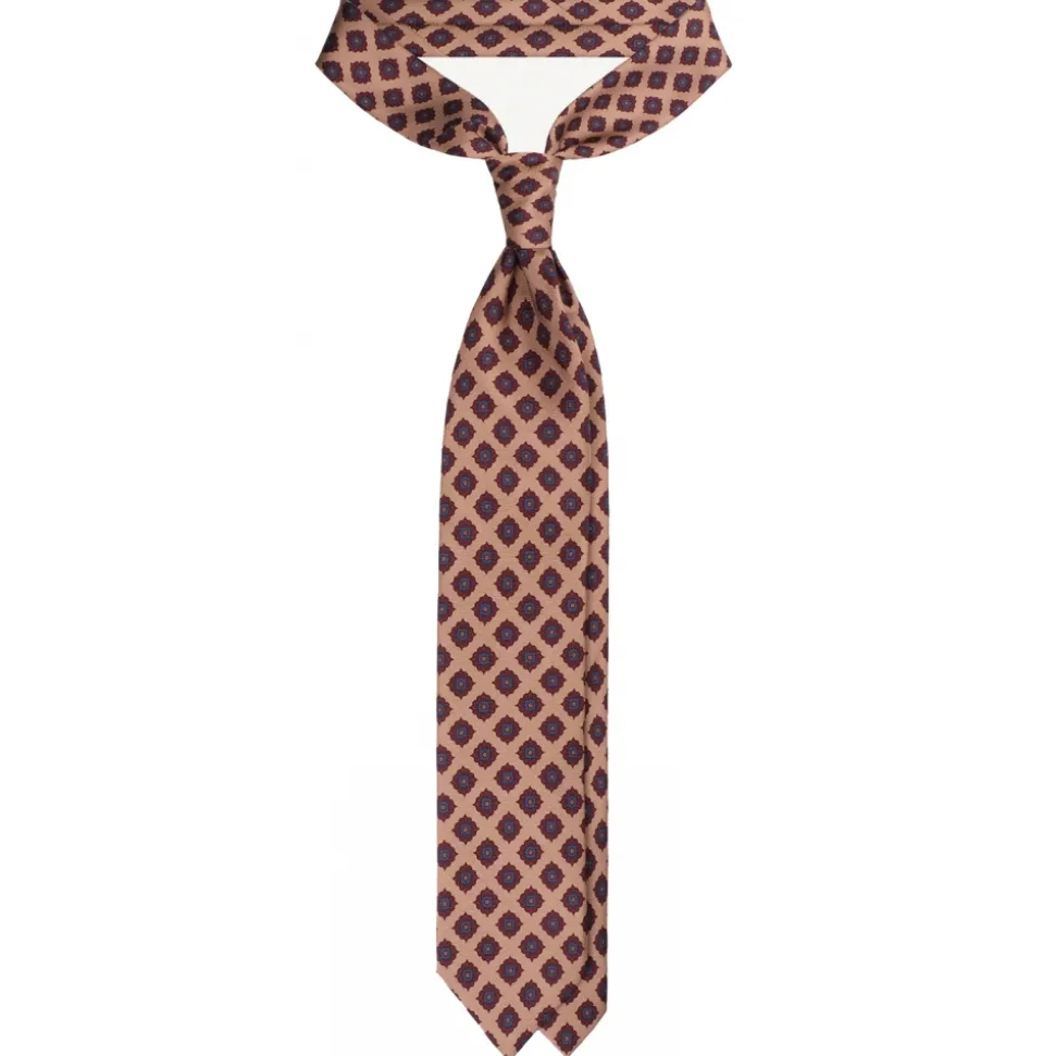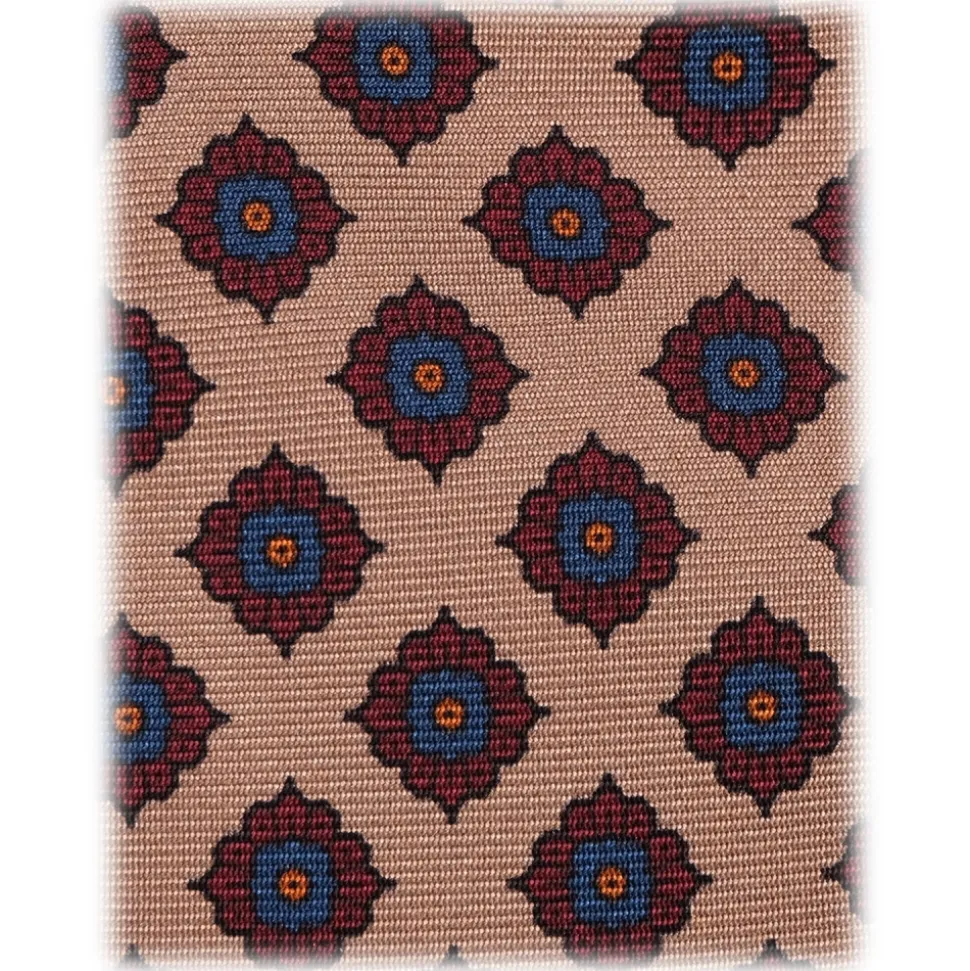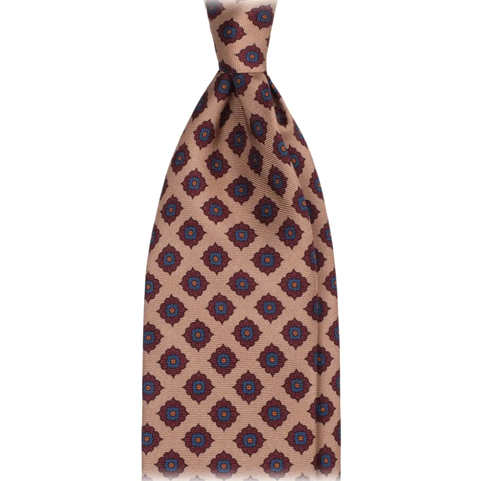 Viola Milano – Rosette Pattern Selftipped Silk Tie – Sand – Handmade in Italy – Luxury Exclusive Collection