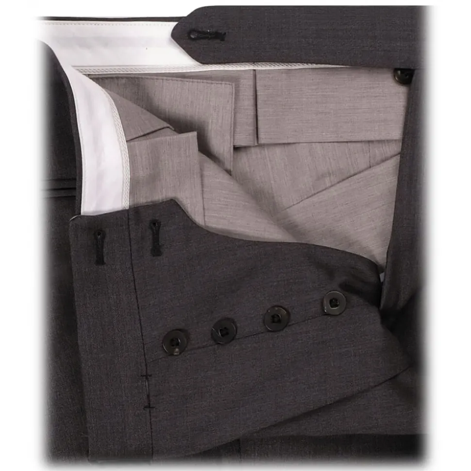 Viola Milano – Single Pleated Sartorial Wool Pants with Side Adjusters – Dark Grey – Handmade in Italy – Luxury Exclusive Collection