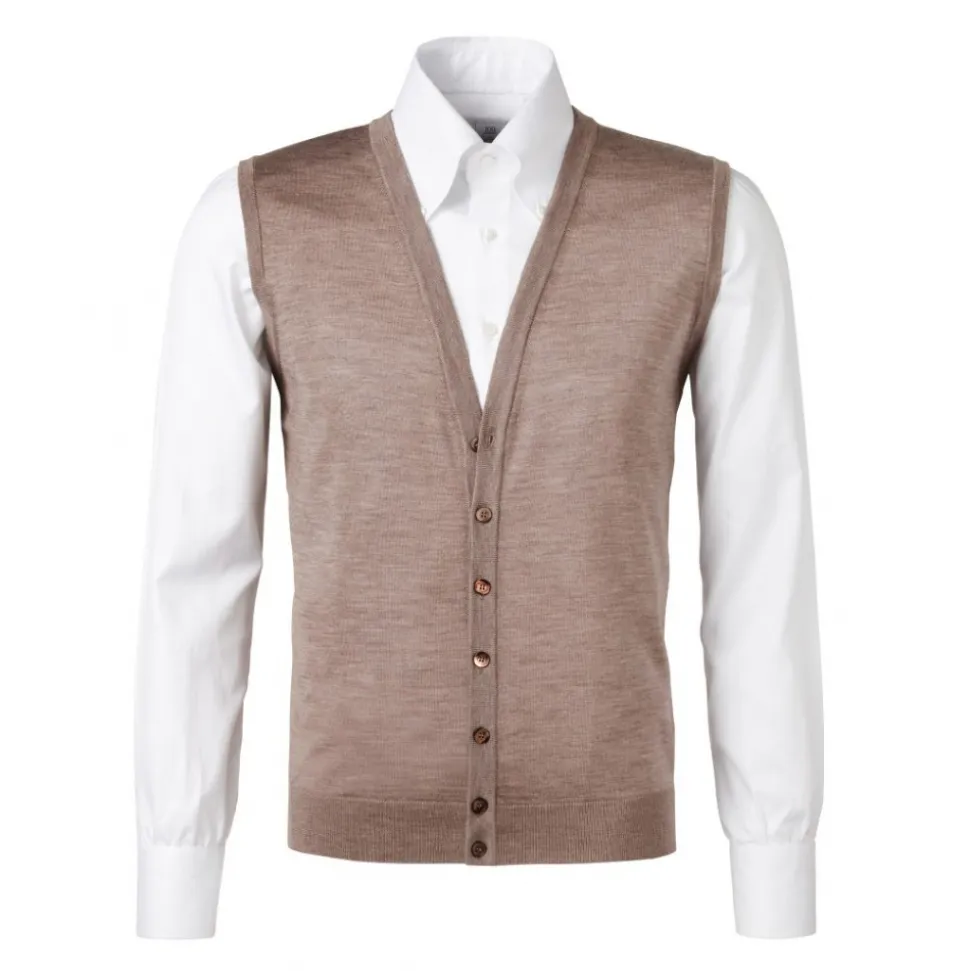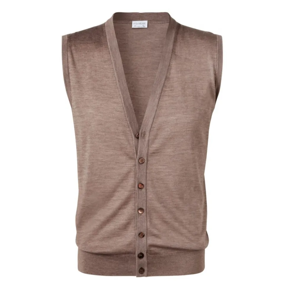 Viola Milano – Sleeveless Cashmere and Silk Cardigan – Beige – Handmade in Italy – Luxury Exclusive Collection