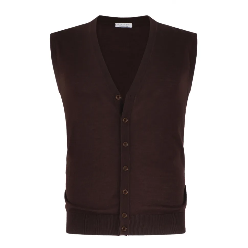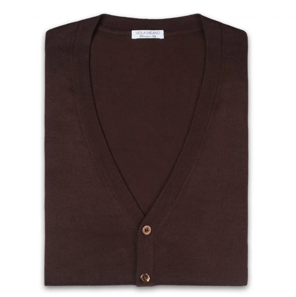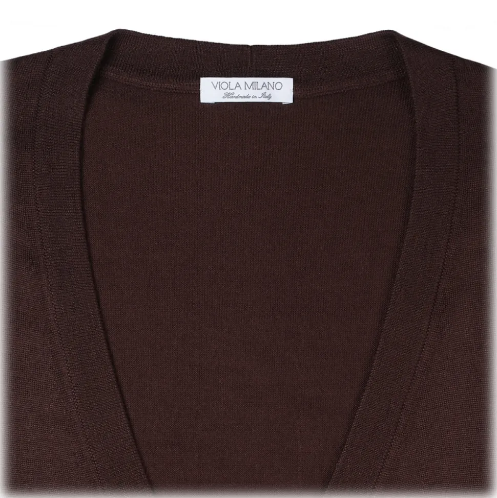 Viola Milano – Sleeveless Cashmere and Silk Cardigan – Brown – Handmade in Italy – Luxury Exclusive Collection