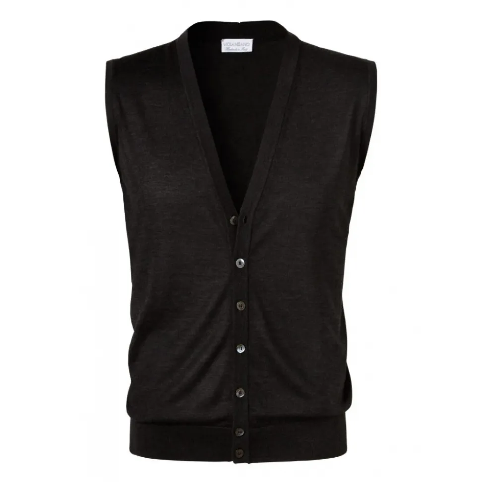 Viola Milano – Sleeveless Cashmere and Silk Cardigan – Dark Grey – Handmade in Italy – Luxury Exclusive Collection