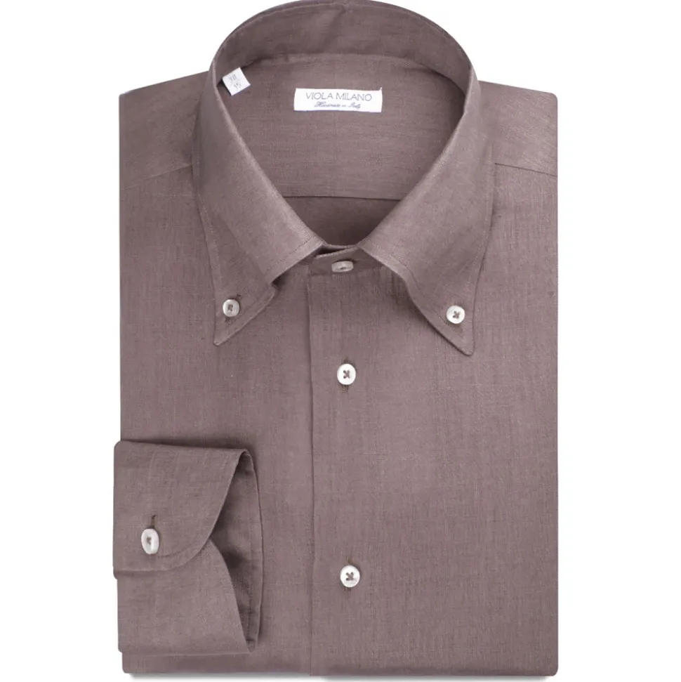 Viola Milano – Solid 100% Linen Button-Down Collar Shirt – Light Tabacco – Handmade in Italy – Luxury Exclusive Collection