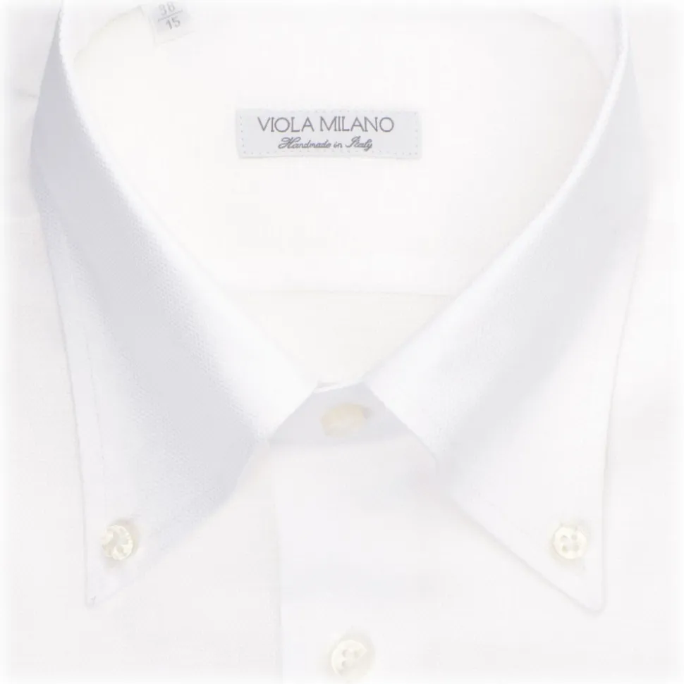 Viola Milano – Solid American Oxford Button-Down Collar Dress Shirt – White – Handmade in Italy – Luxury Exclusive Collection
