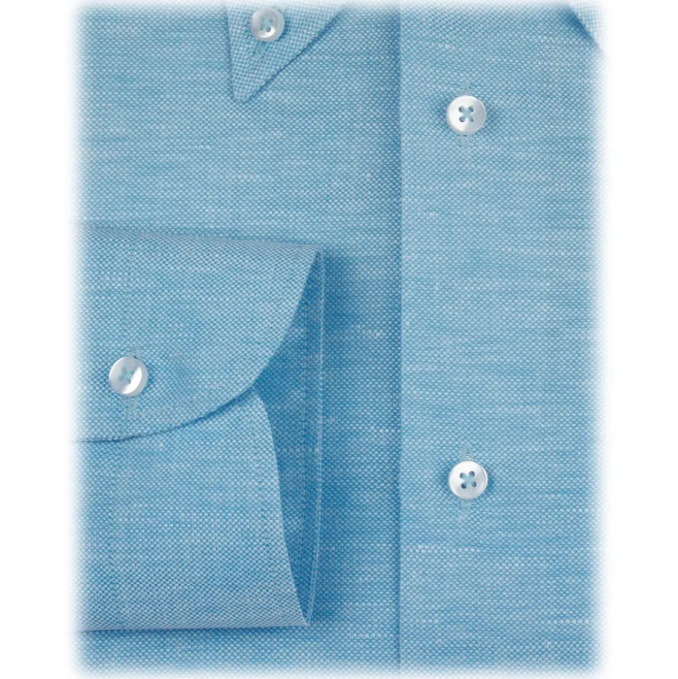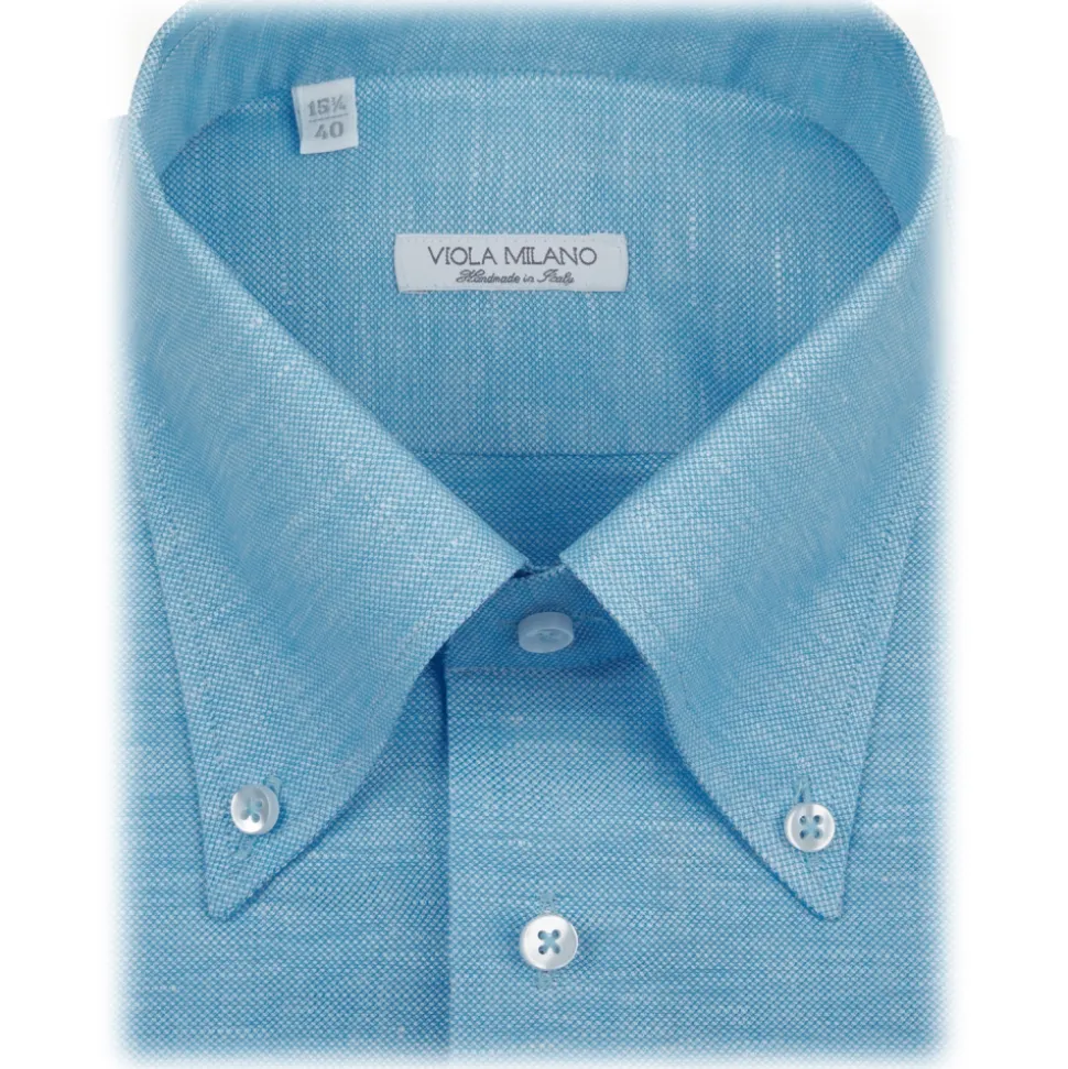 Viola Milano – Solid Carlo Riva Oxford/Linen Button-Down Shirt – Sea – Handmade in Italy – Luxury Exclusive Collection